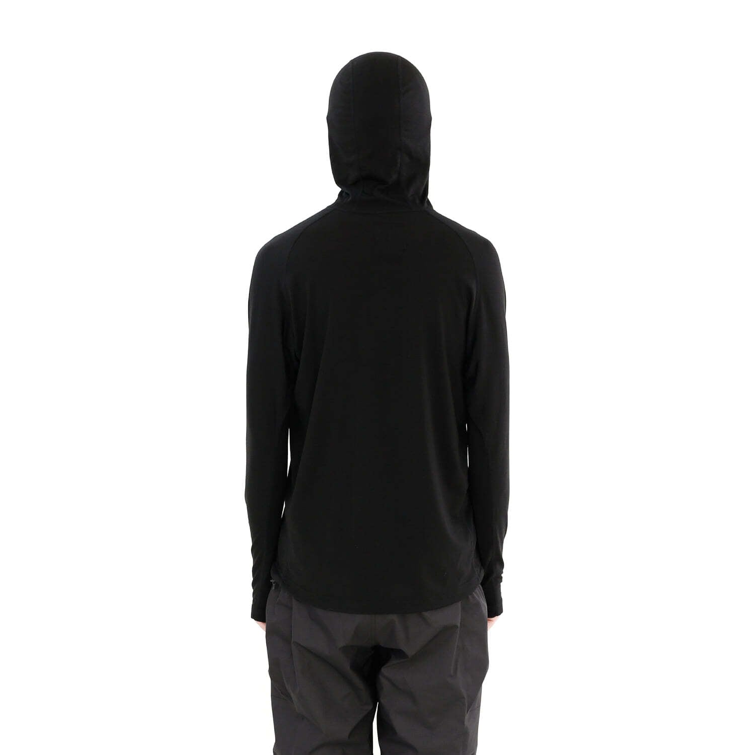 耐久性を高めるためにナイロンを混紡した17.5ミクロンのメリノウール糸で編み立てたフーディです。