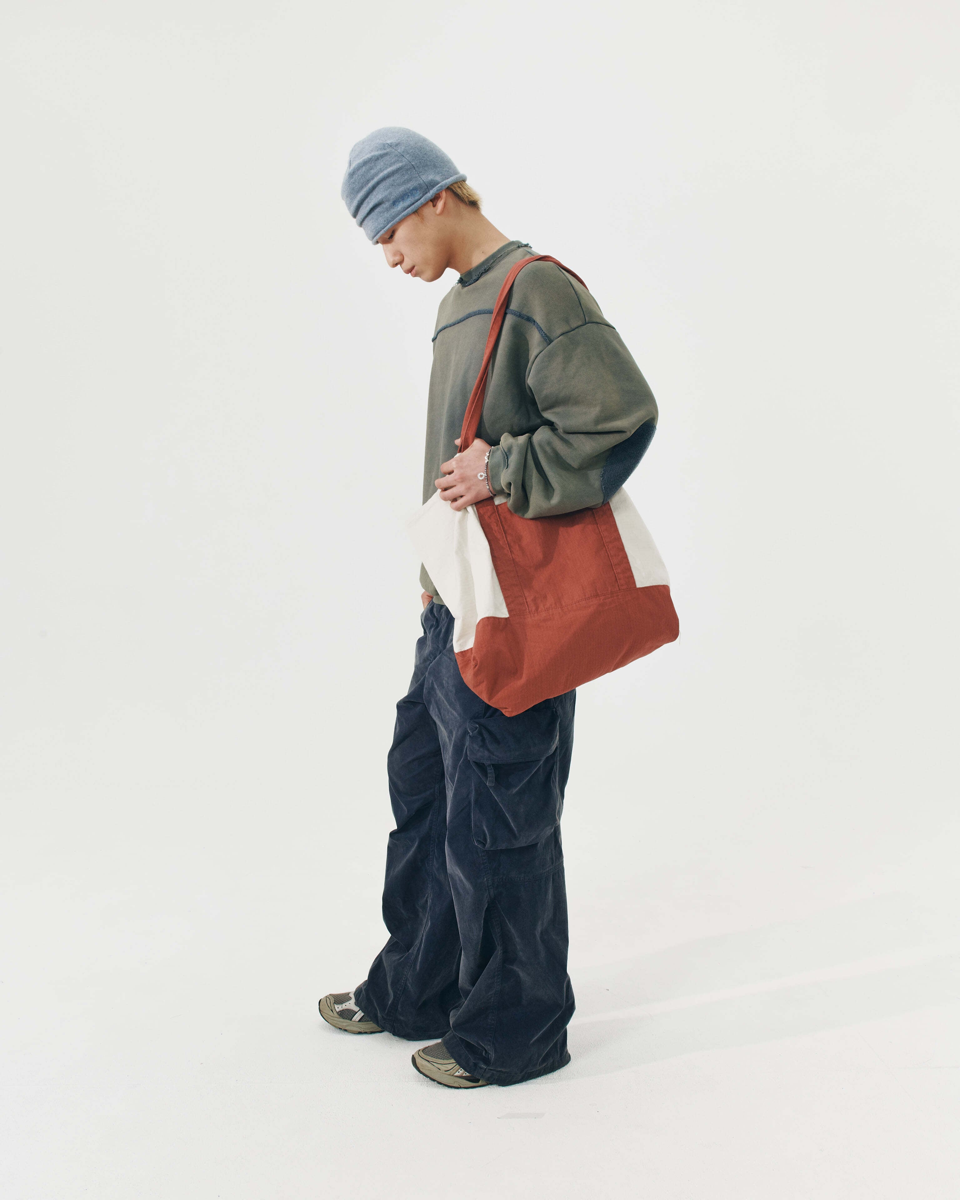 [999HUMANITY] AV BIG TOTE BAG (WASHED ECRU-MAROON) 正規品 韓国 ブランド 韓国ファッション 韓国代行 999 ヒューマニティ HUMANITY 日本 店舗