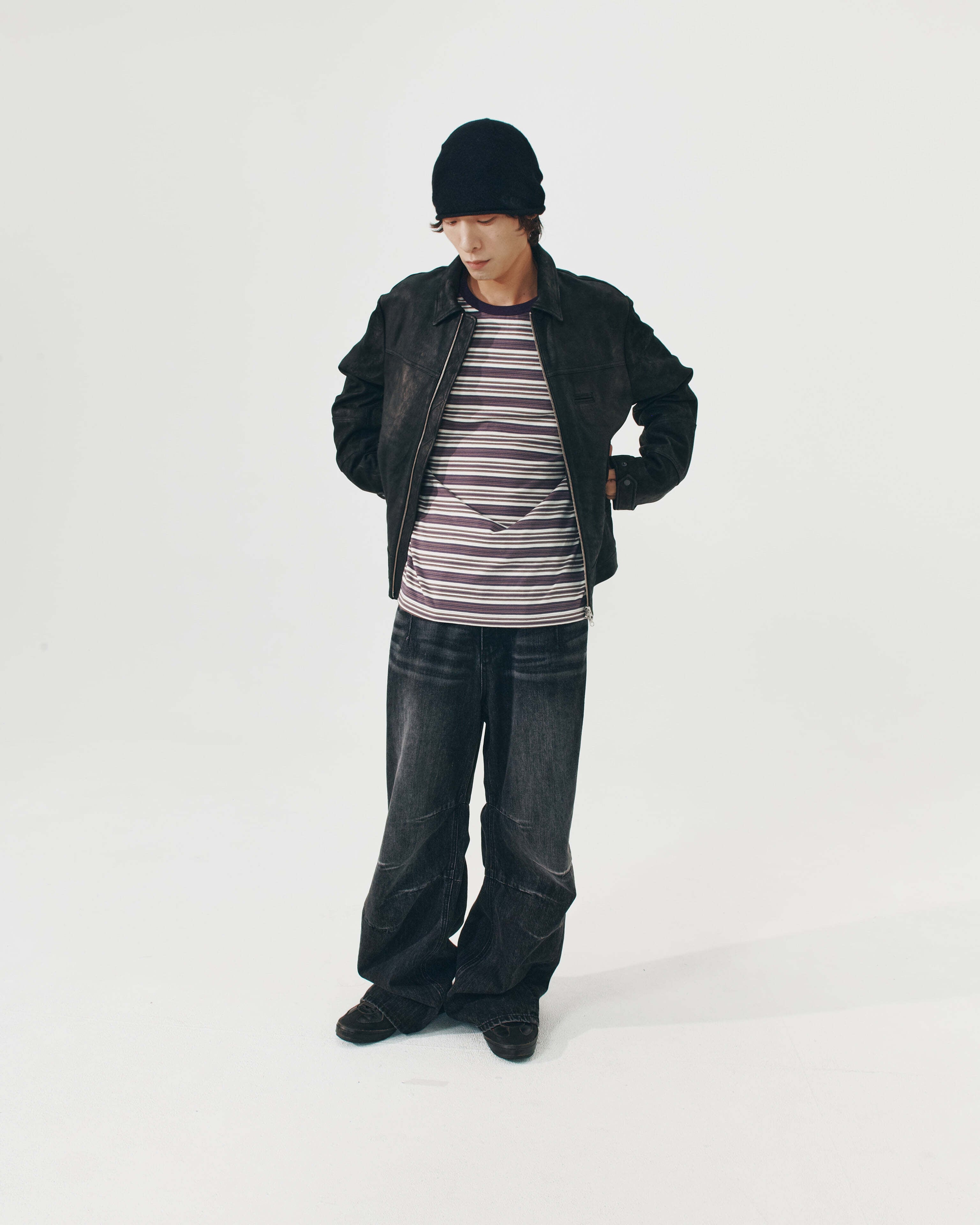 [999HUMANITY] EASY STRIPE LONGSLEEVE (CHARCOAL) 正規品 韓国 ブランド 韓国ファッション 韓国代行 999 ヒューマニティ HUMANITY 日本 店舗
