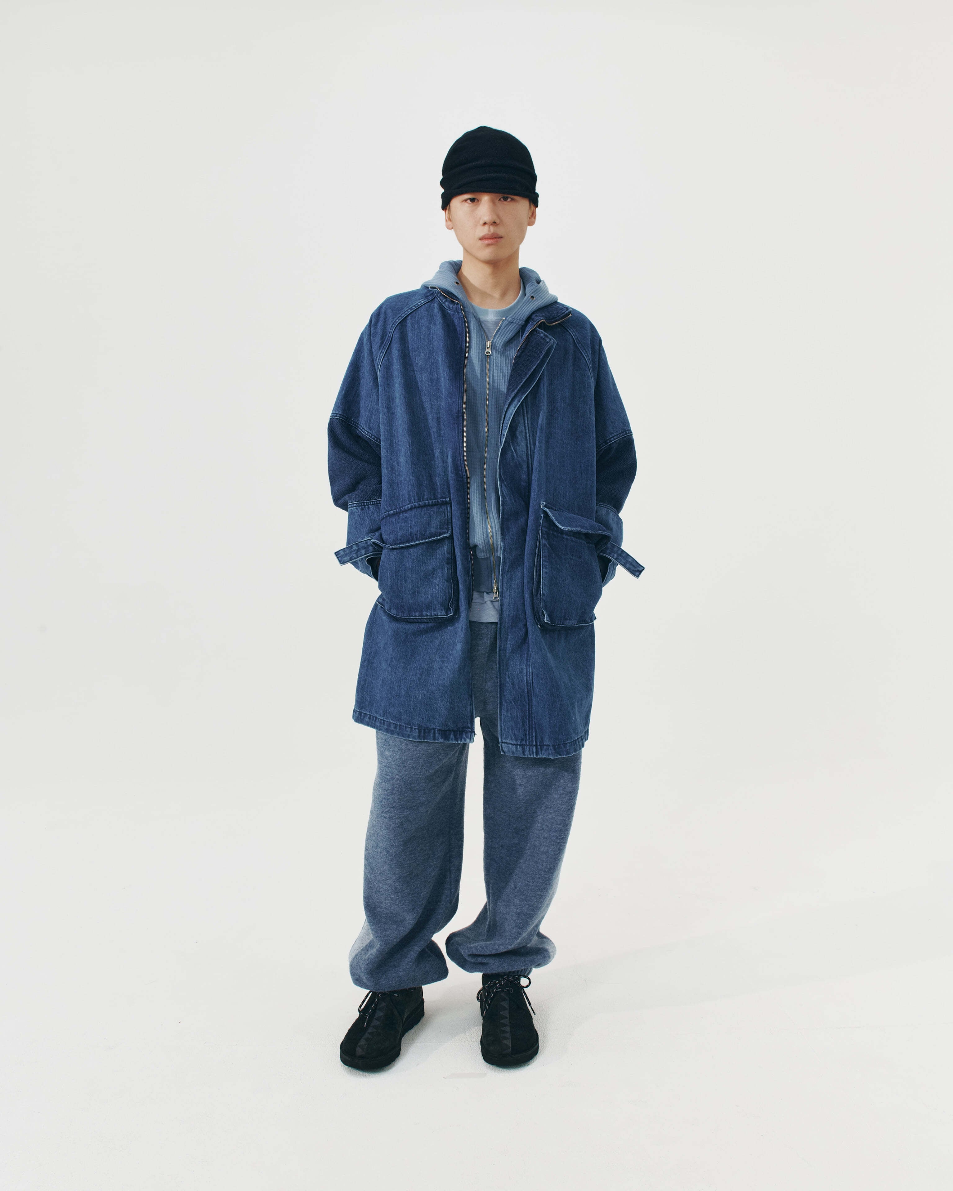 [999HUMANITY] OVERSIZED DENIM FISHTAIL JACKET (MEDIUM BLUE) 正規品 韓国 ブランド 韓国ファッション 韓国代行 999 ヒューマニティ HUMANITY 日本 店舗