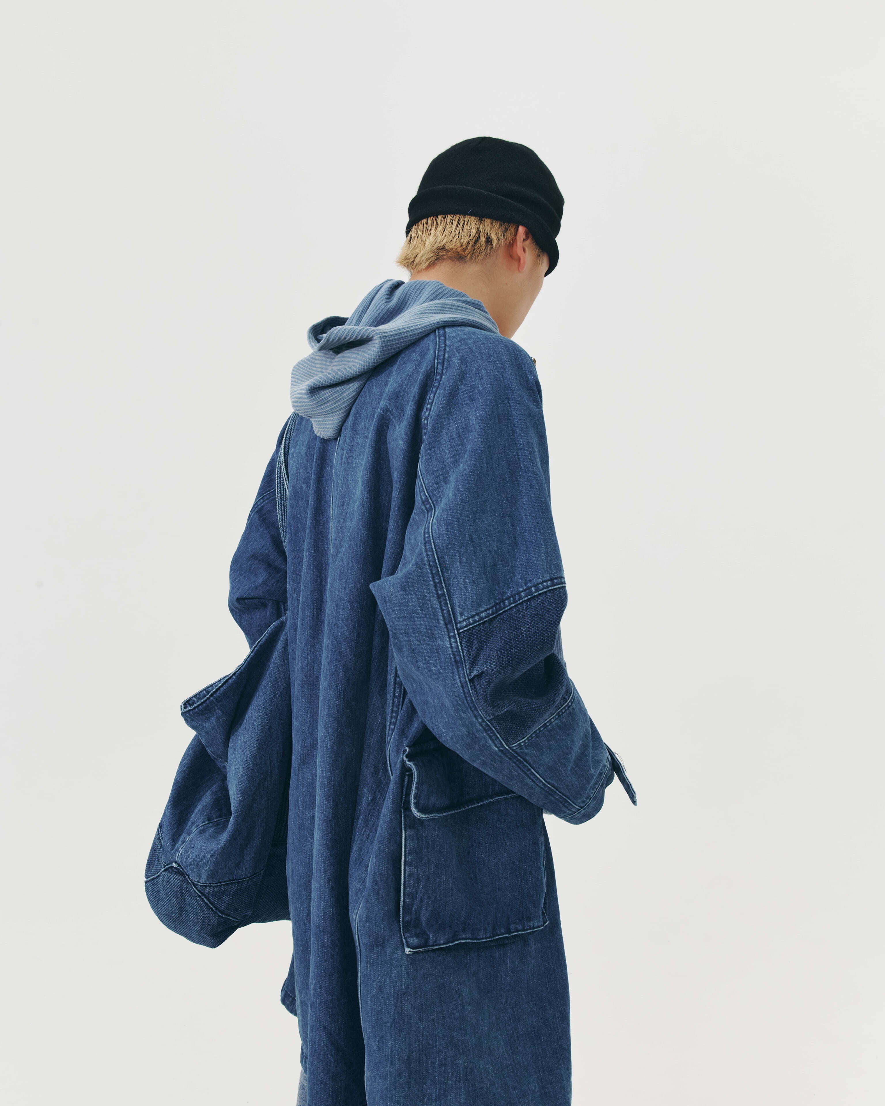 [999HUMANITY] OVERSIZED DENIM FISHTAIL JACKET (MEDIUM BLUE)