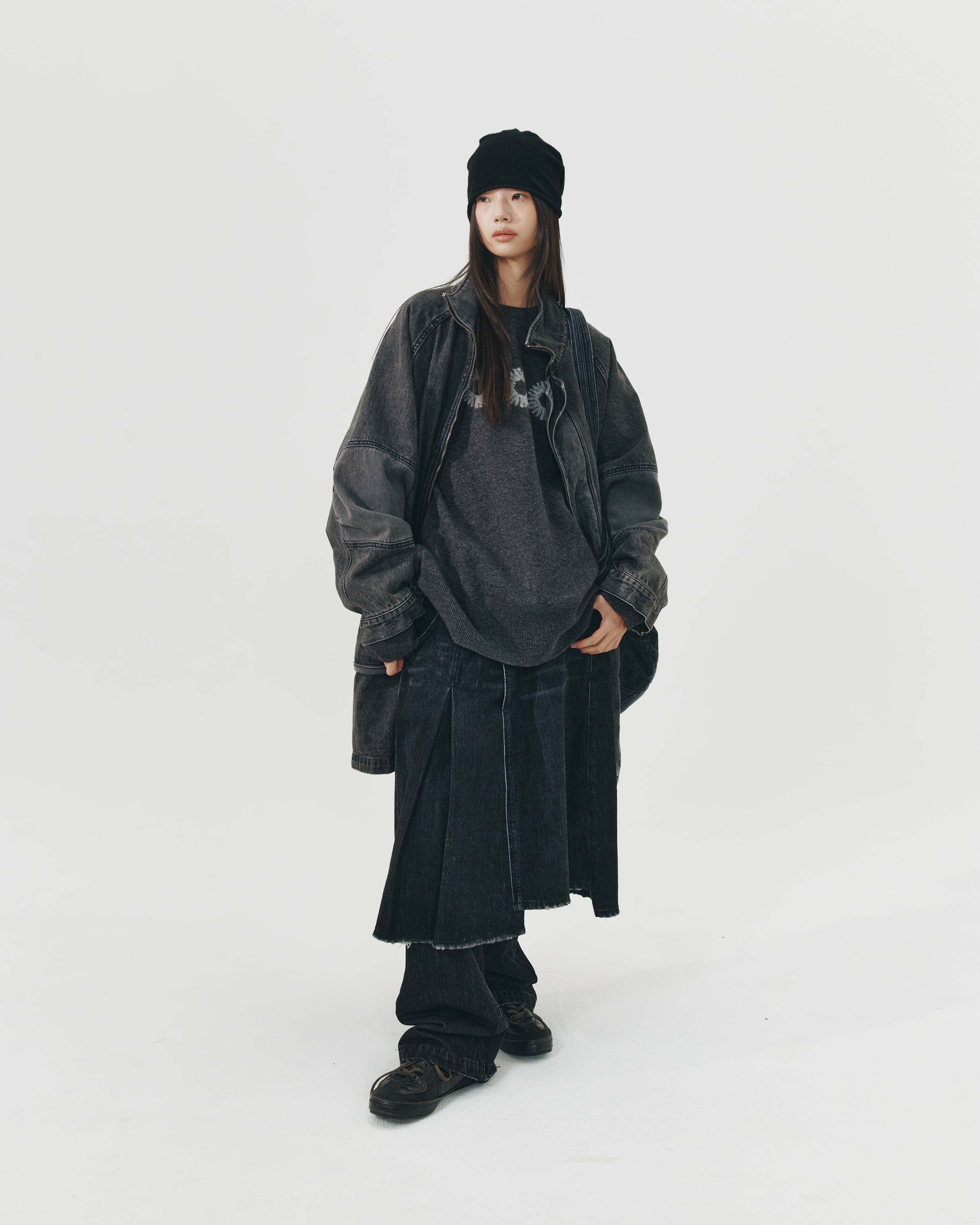 [999HUMANITY] OVERSIZED DENIM FISHTAIL JACKET (WASHED BLACK)