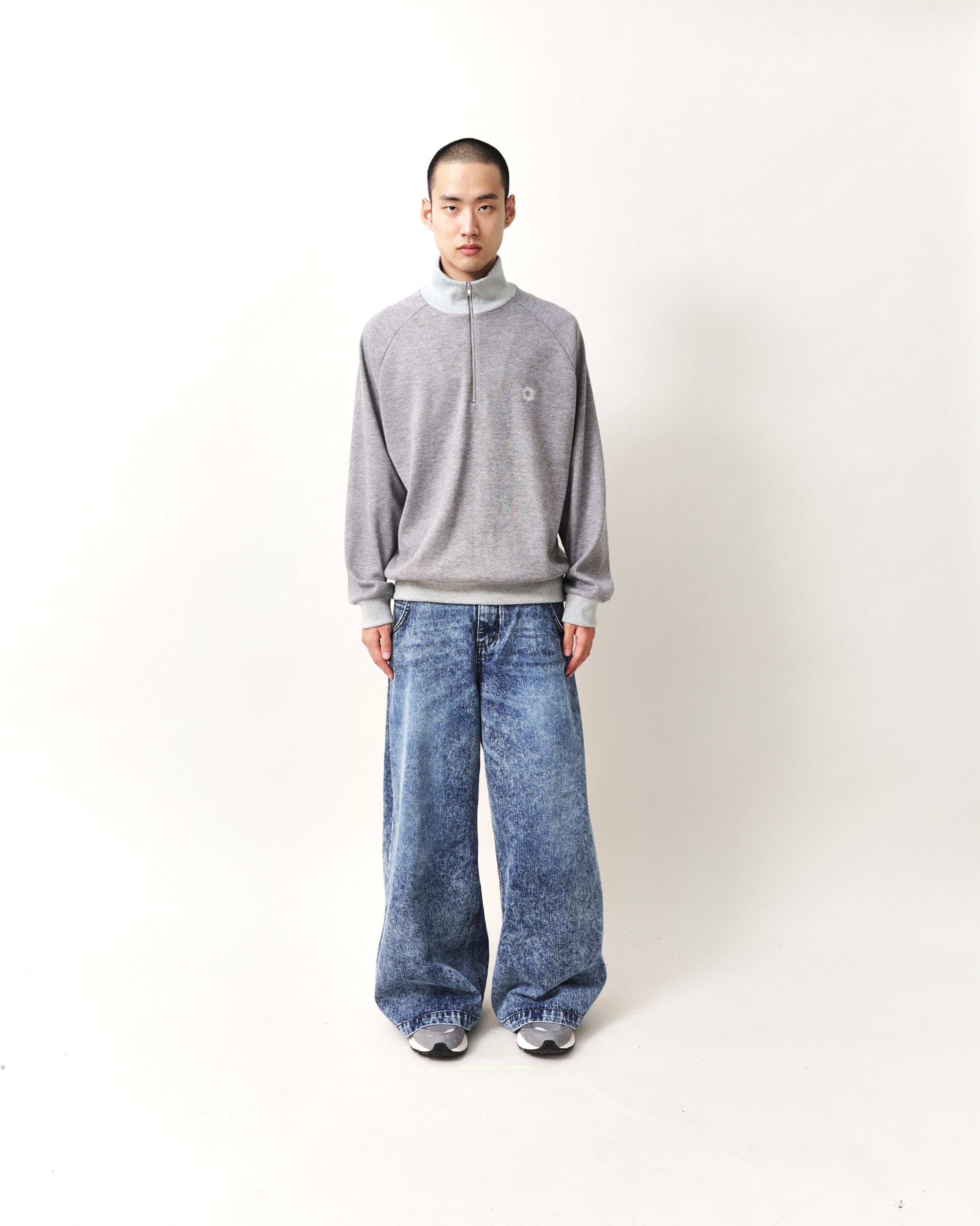 [999HUMANITY] EASY KNITTED HALF ZIP UP (MELANGE GREY)