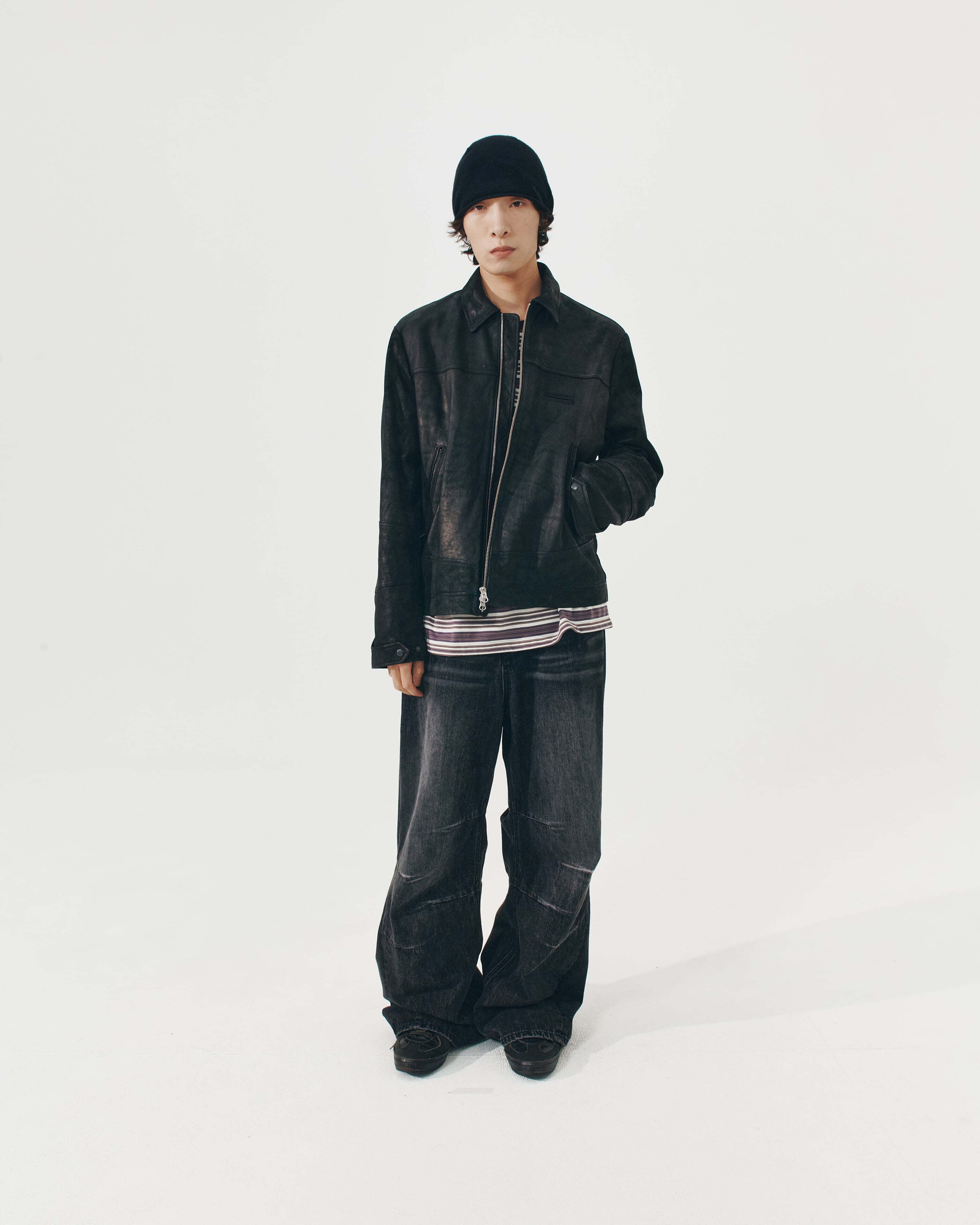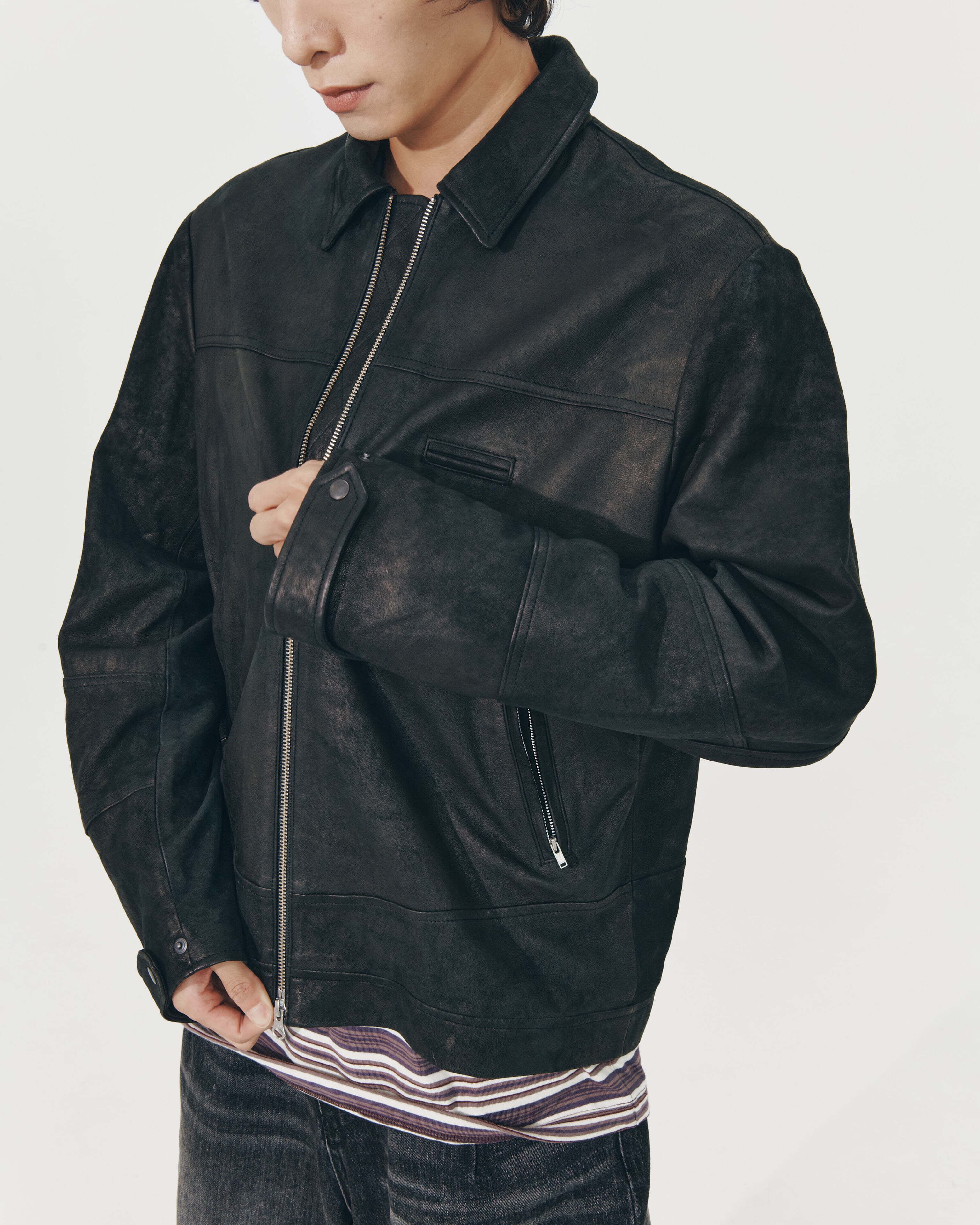 [999HUMANITY] HERITAGE LEATHER JACKET (VINTAGE BLACK(LAMBSKIN)) 正規品 韓国 ブランド 韓国ファッション 韓国代行 999 ヒューマニティ HUMANITY 日本 店舗