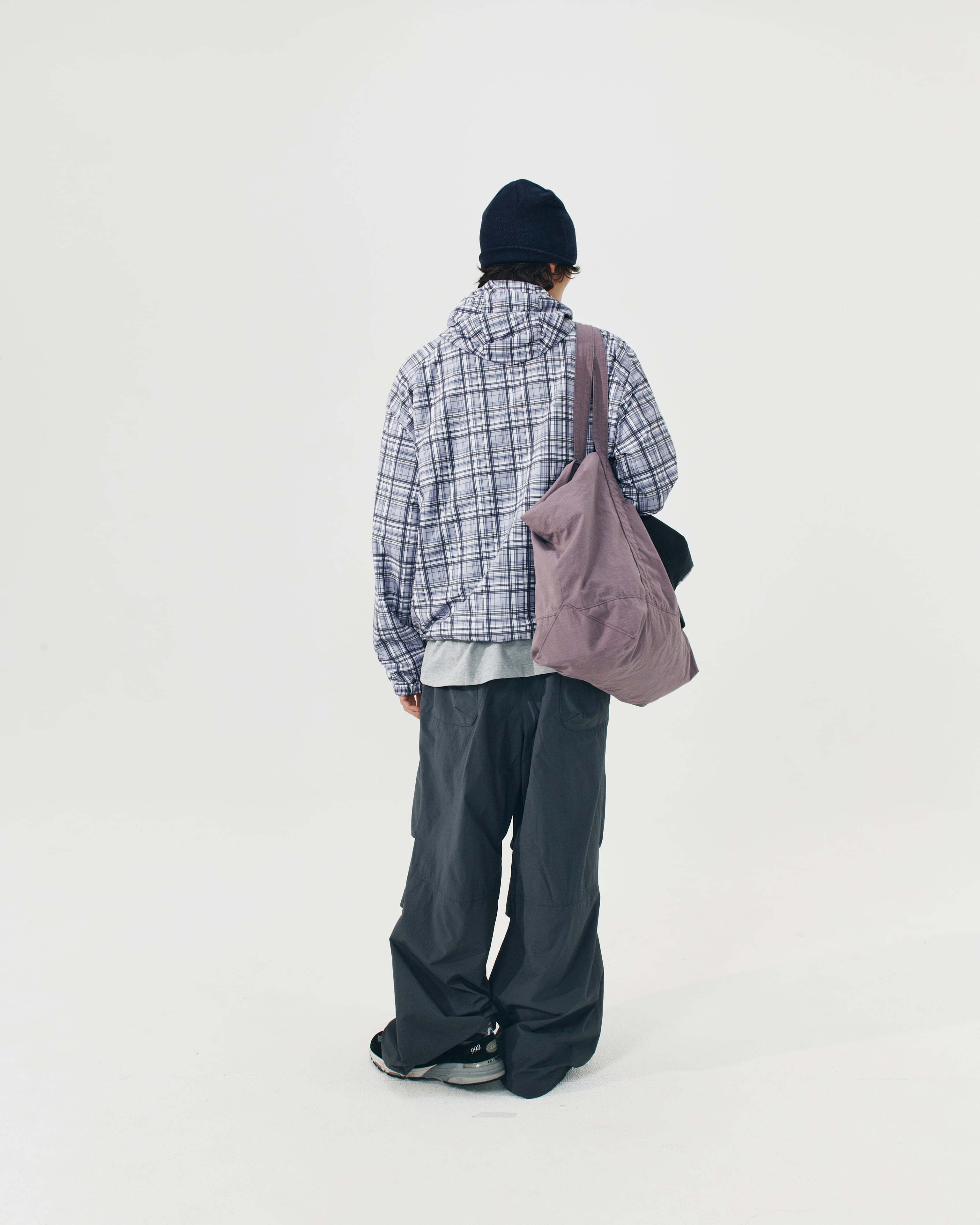 [999HUMANITY] CHECK LIGHT HOODED JACKET (PURPLE CHARCOAL)