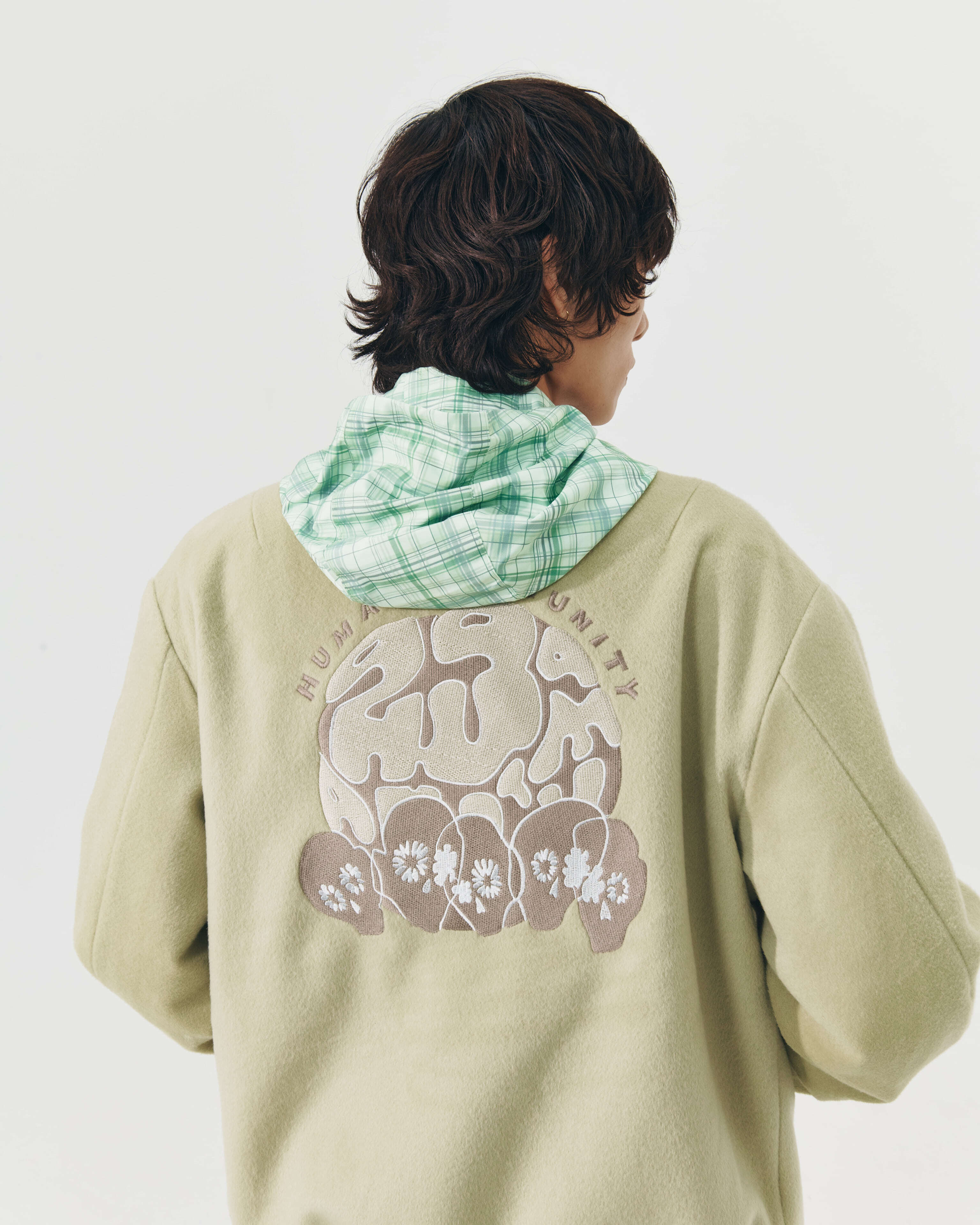 [999HUMANITY] CHECK LIGHT HOODED JACKET (GREEN)