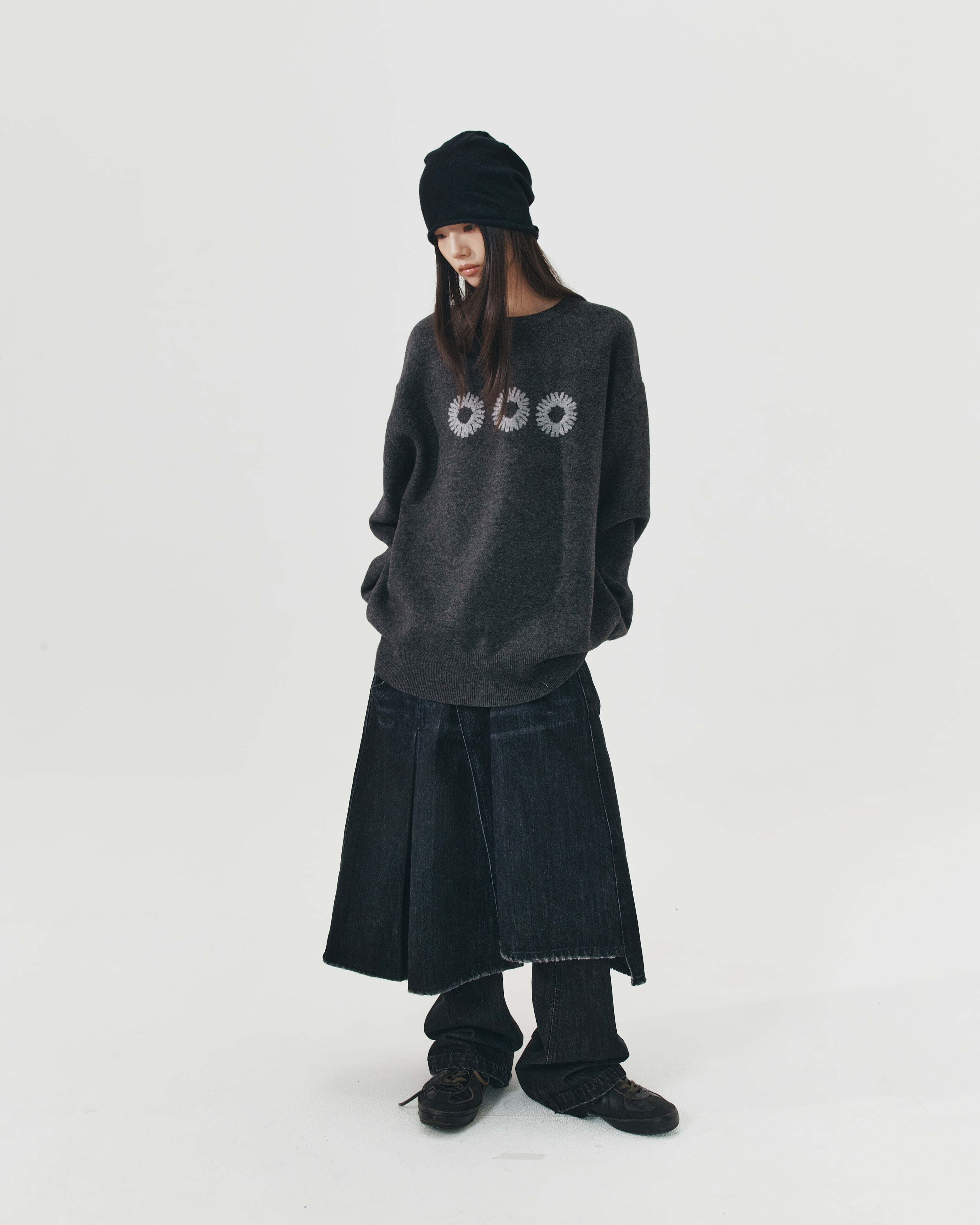 [999HUMANITY] LOGO CREWNECK KNIT (DARK GREY) 正規品 韓国 ブランド 韓国ファッション 韓国代行 999 ヒューマニティ HUMANITY 日本 店舗