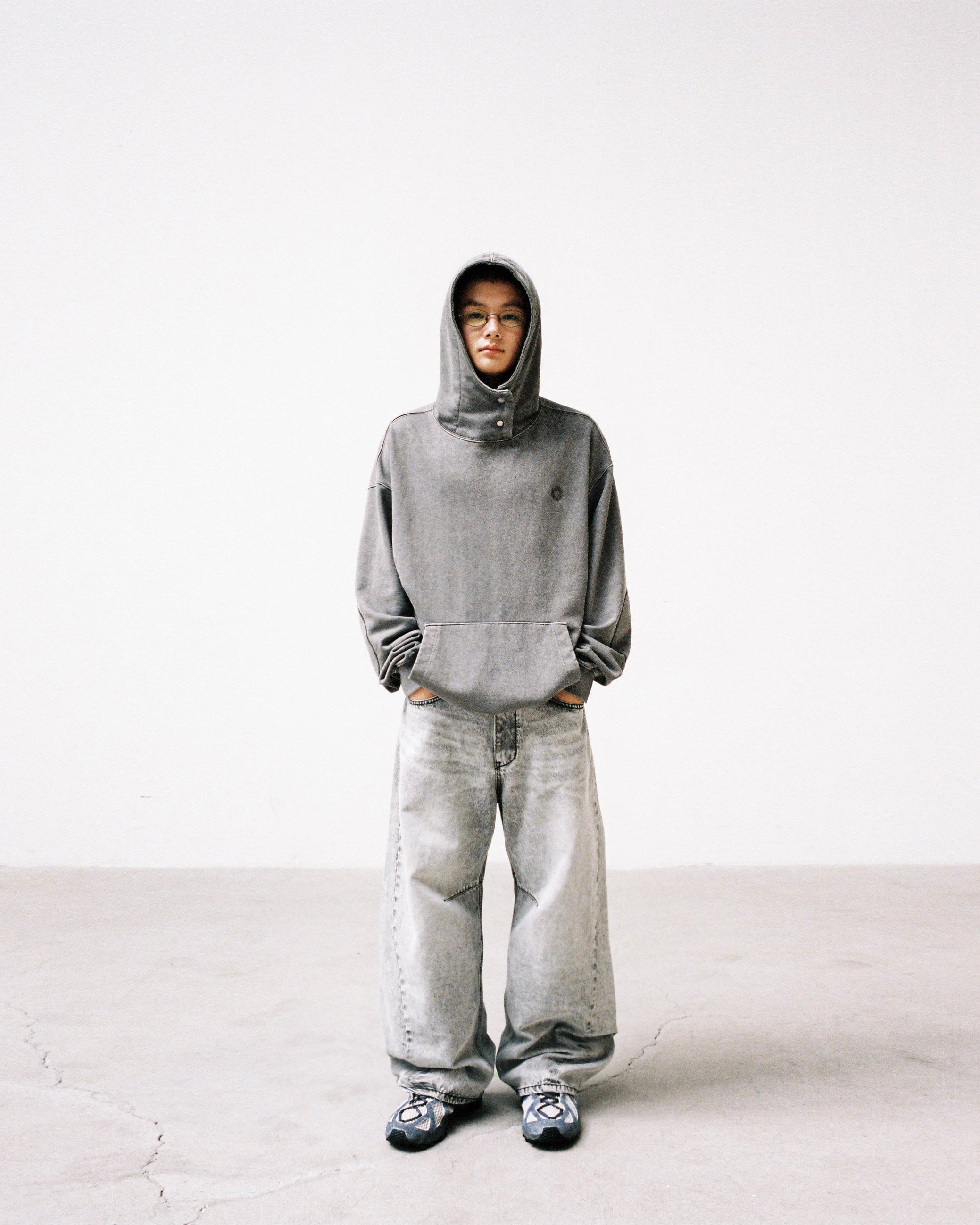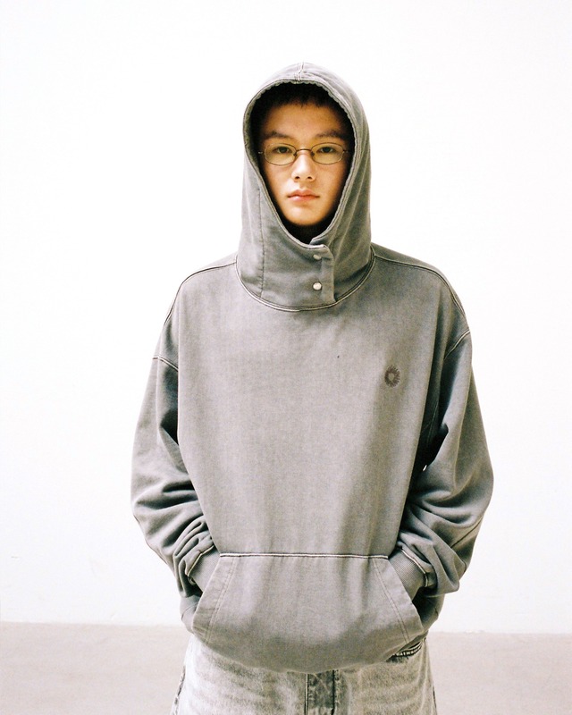 [999HUMANITY] NECK SNAP DYEING HOODIE (GRAPHITE GREY) 正規品 韓国 ブランド 韓国ファッション 韓国代行 999 ヒューマニティ HUMANITY 日本 店舗