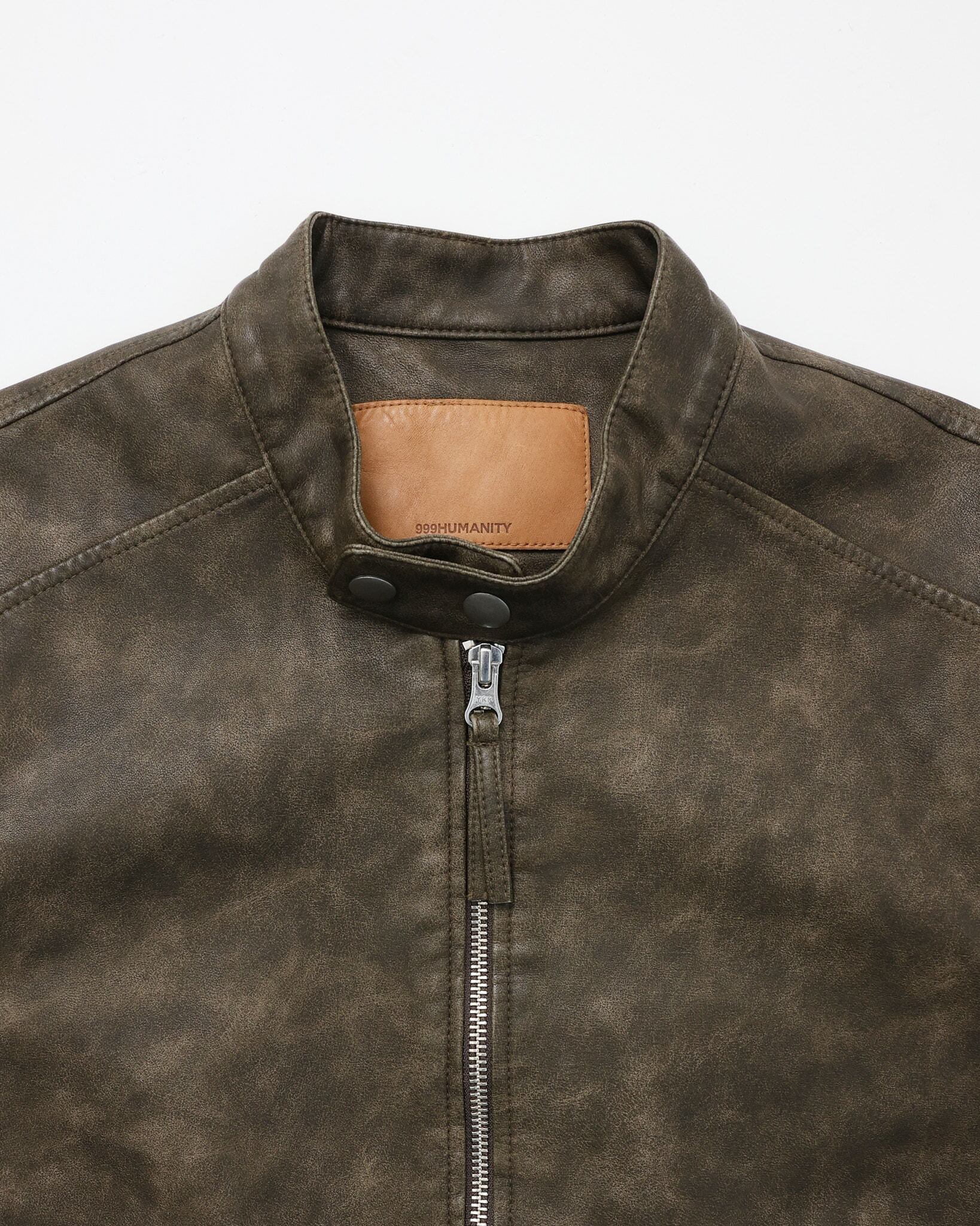 [999HUMANITY] RIDER LEATHER JACKET (WASHED BROWN)