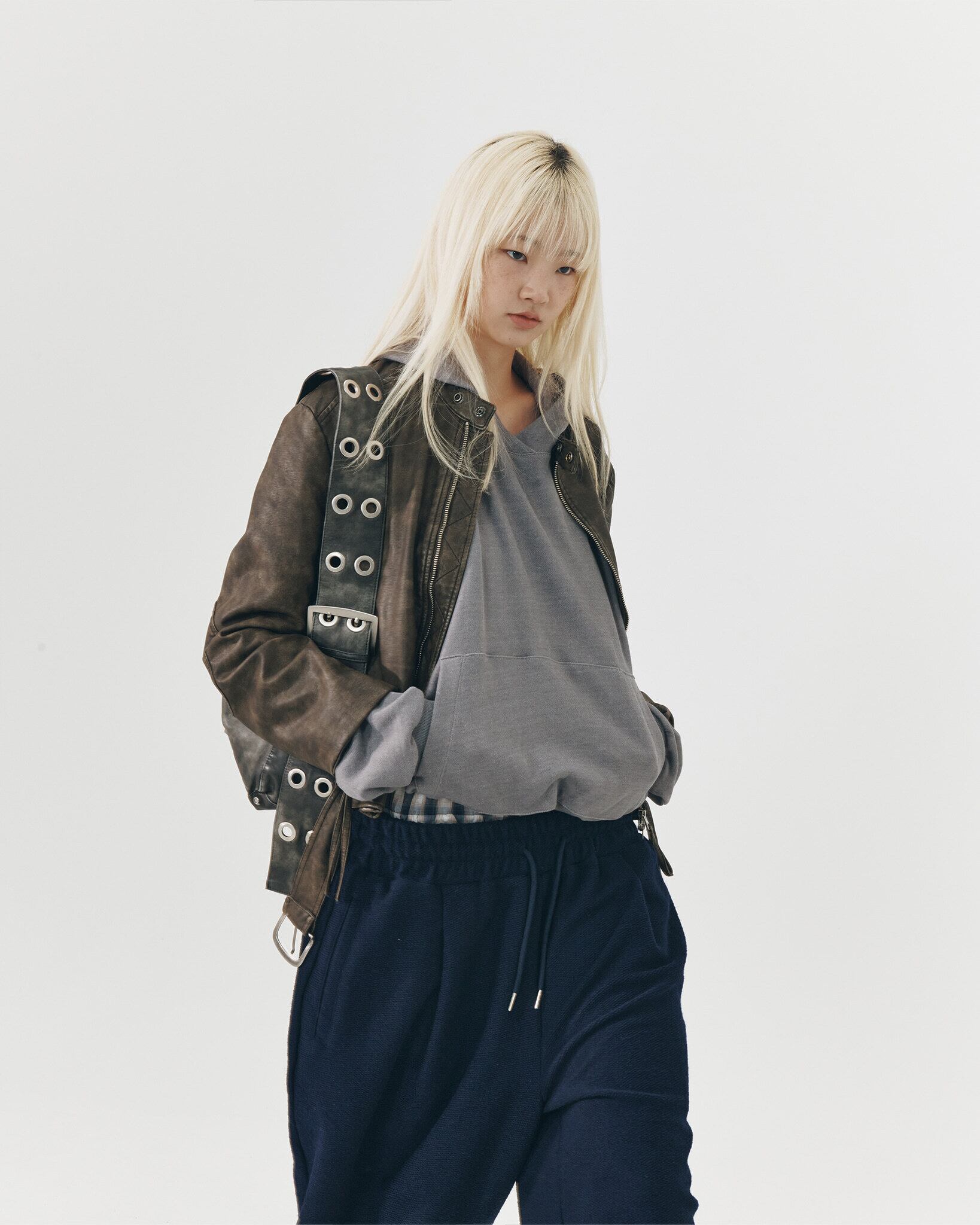[999HUMANITY] RIDER LEATHER JACKET (WASHED BROWN) 正規品 韓国 ブランド 韓国ファッション 韓国代行 999 ヒューマニティ HUMANITY 日本 店舗
