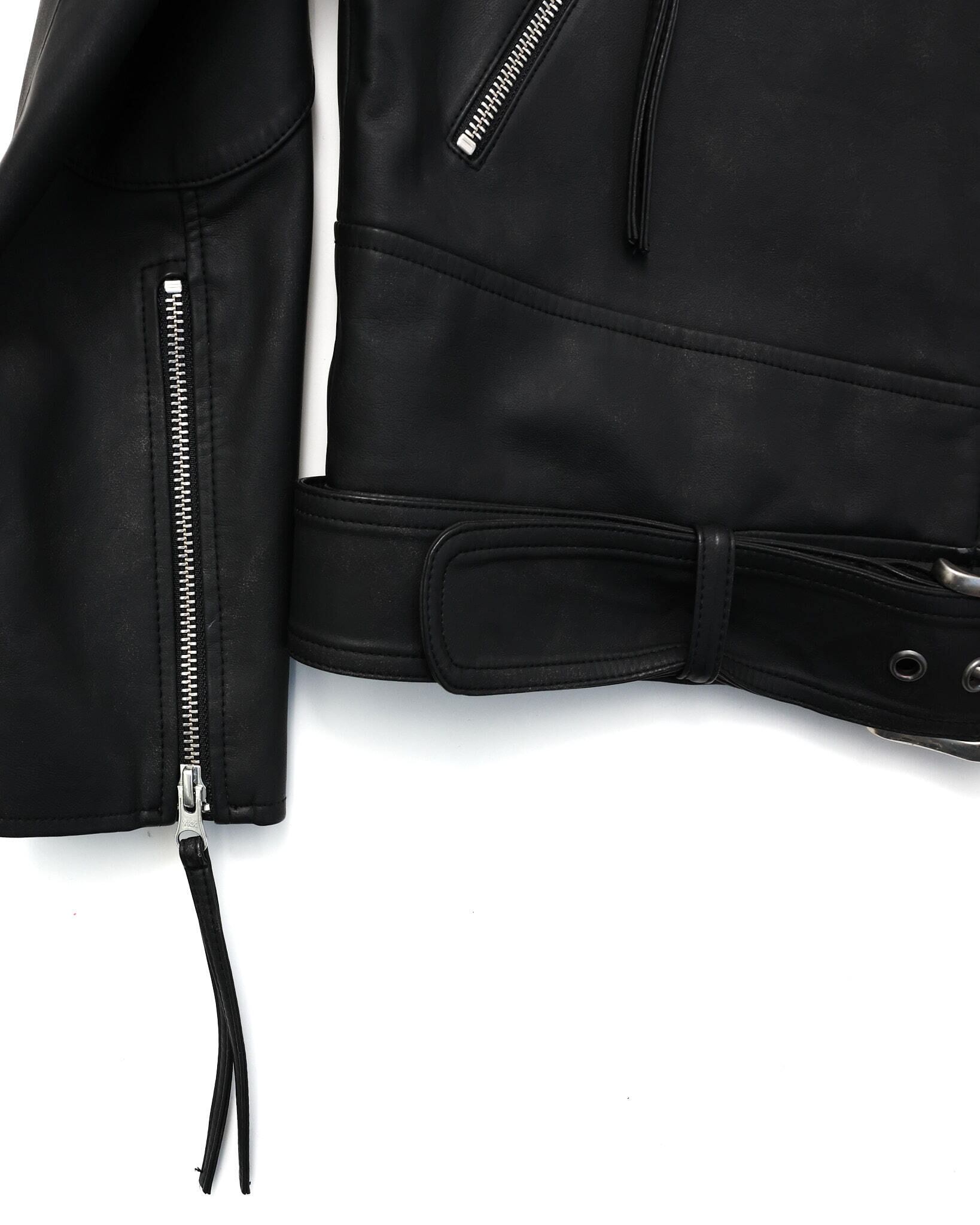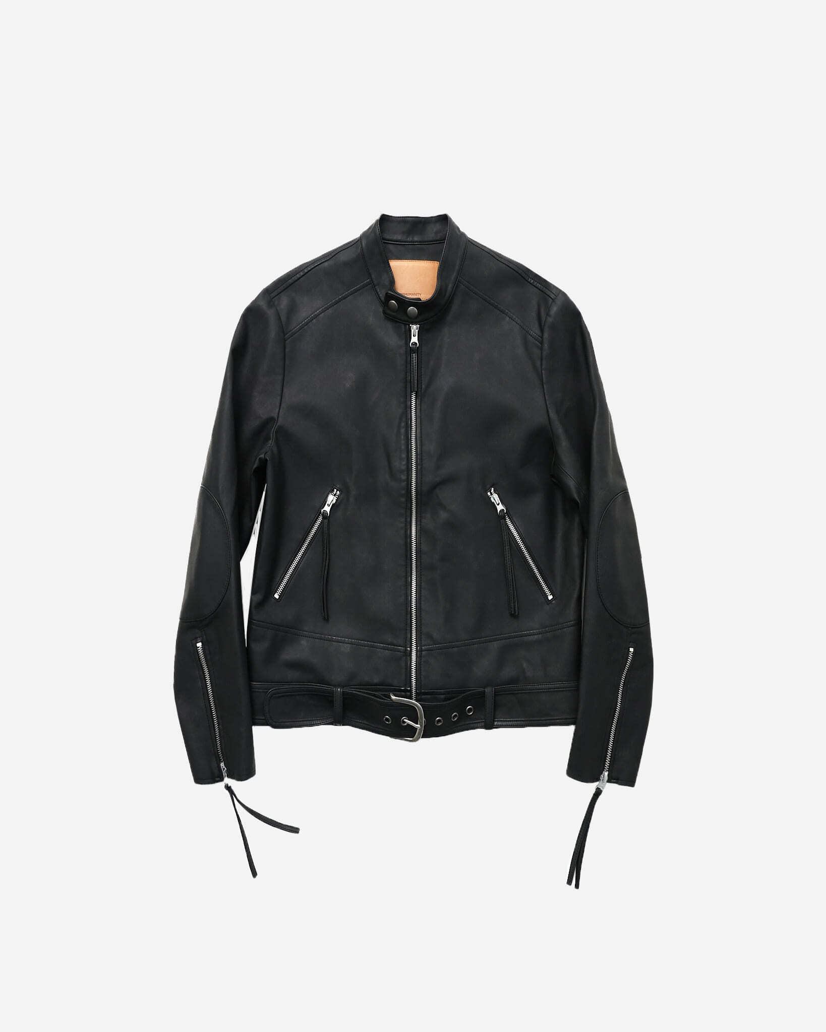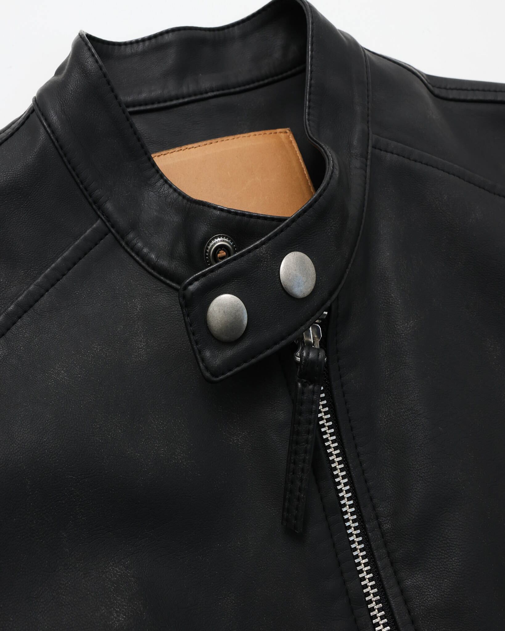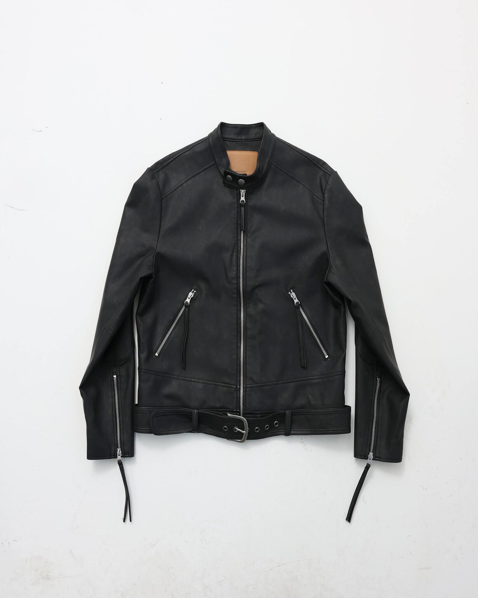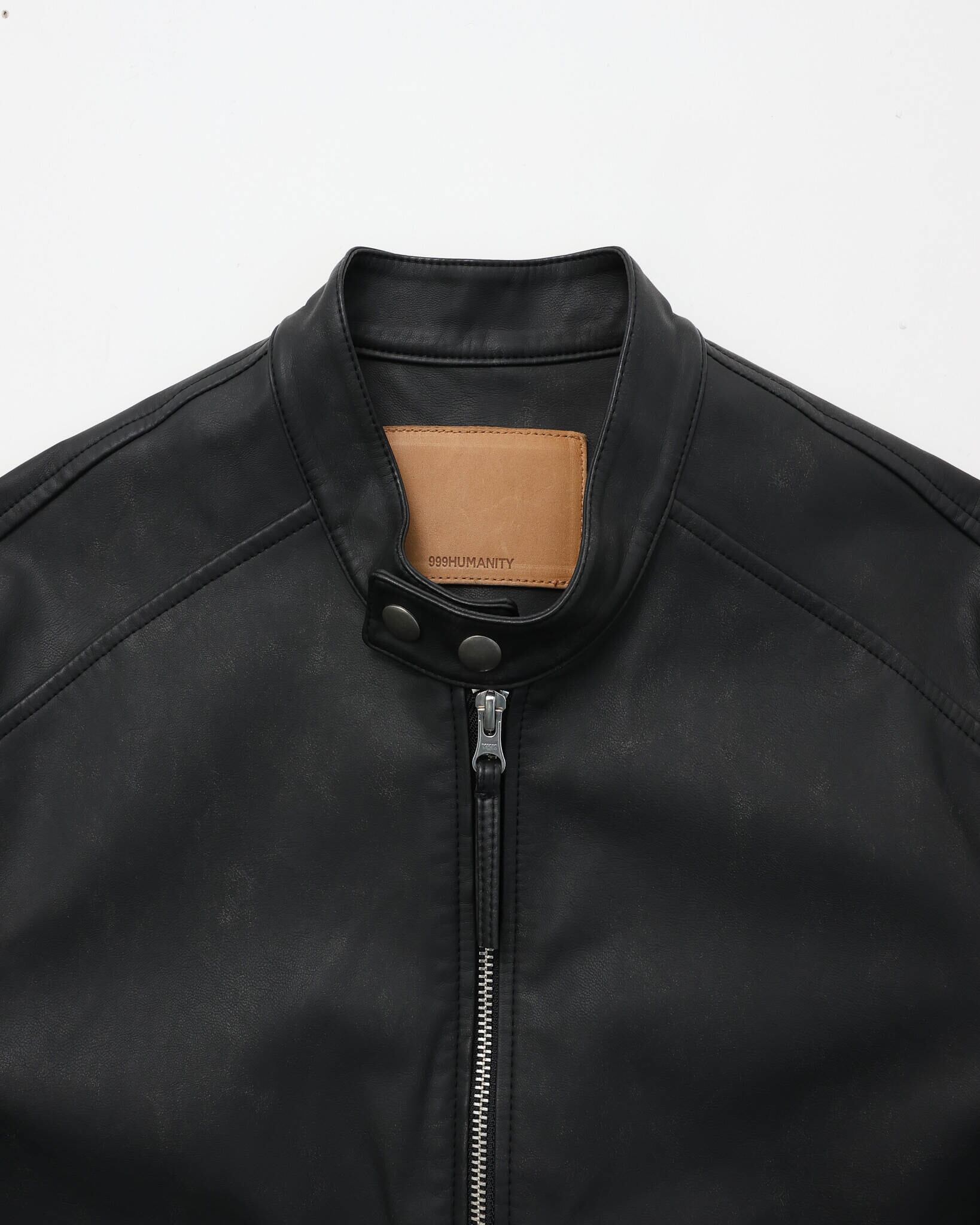 [999HUMANITY] RIDER LEATHER JACKET (WASHED BLACK)