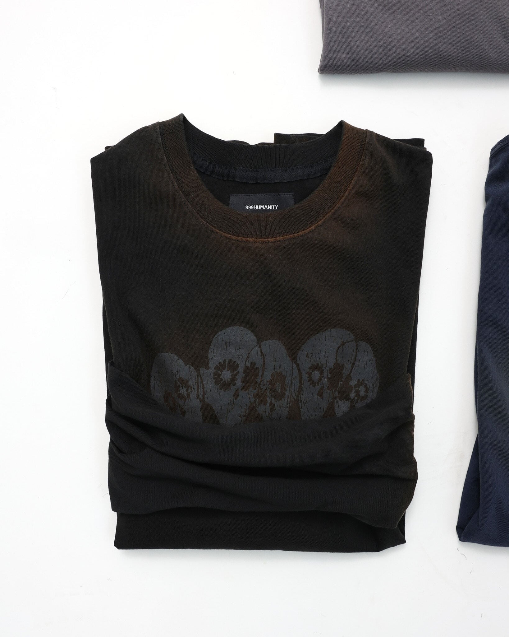 [999HUMANITY] HC SKULL LONGSLEEVE (BLEACHED BLACK) 正規品 韓国 ブランド 韓国ファッション 韓国代行 999 ヒューマニティ HUMANITY 日本 店舗