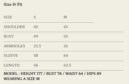 添付のサイズ表をご参照ください。