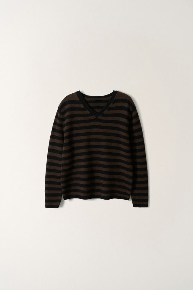 [NOTHING WRITTEN] Molly V-Neck Pullover (Brown Stripe)