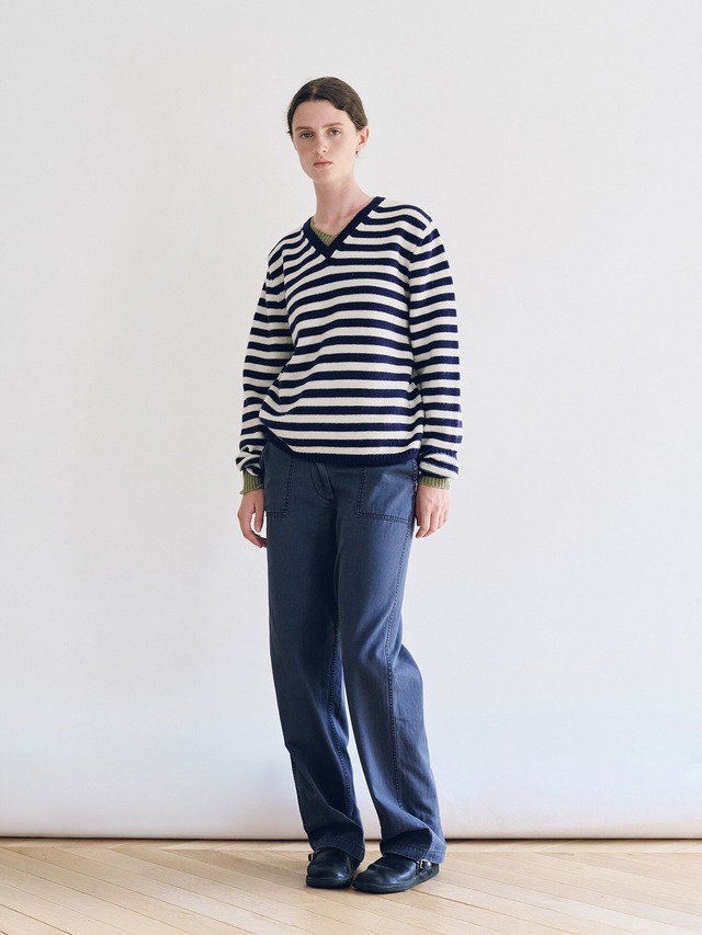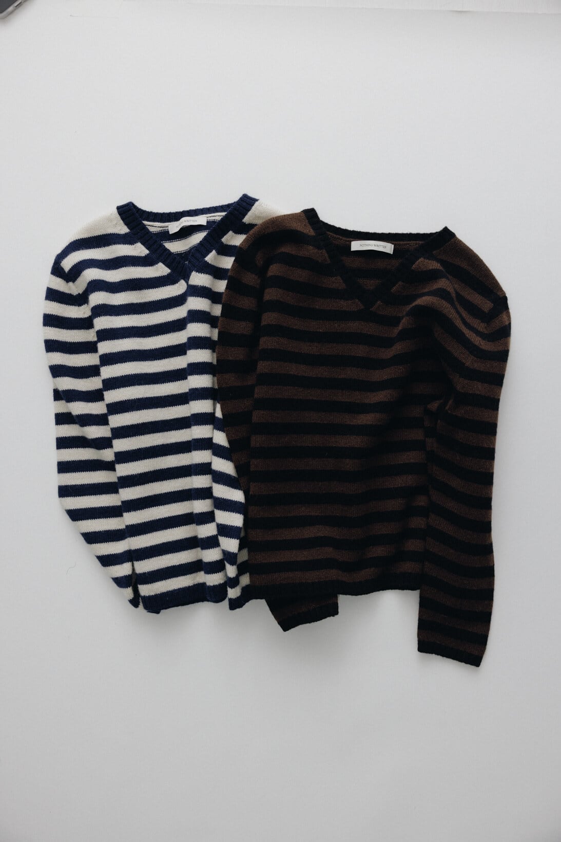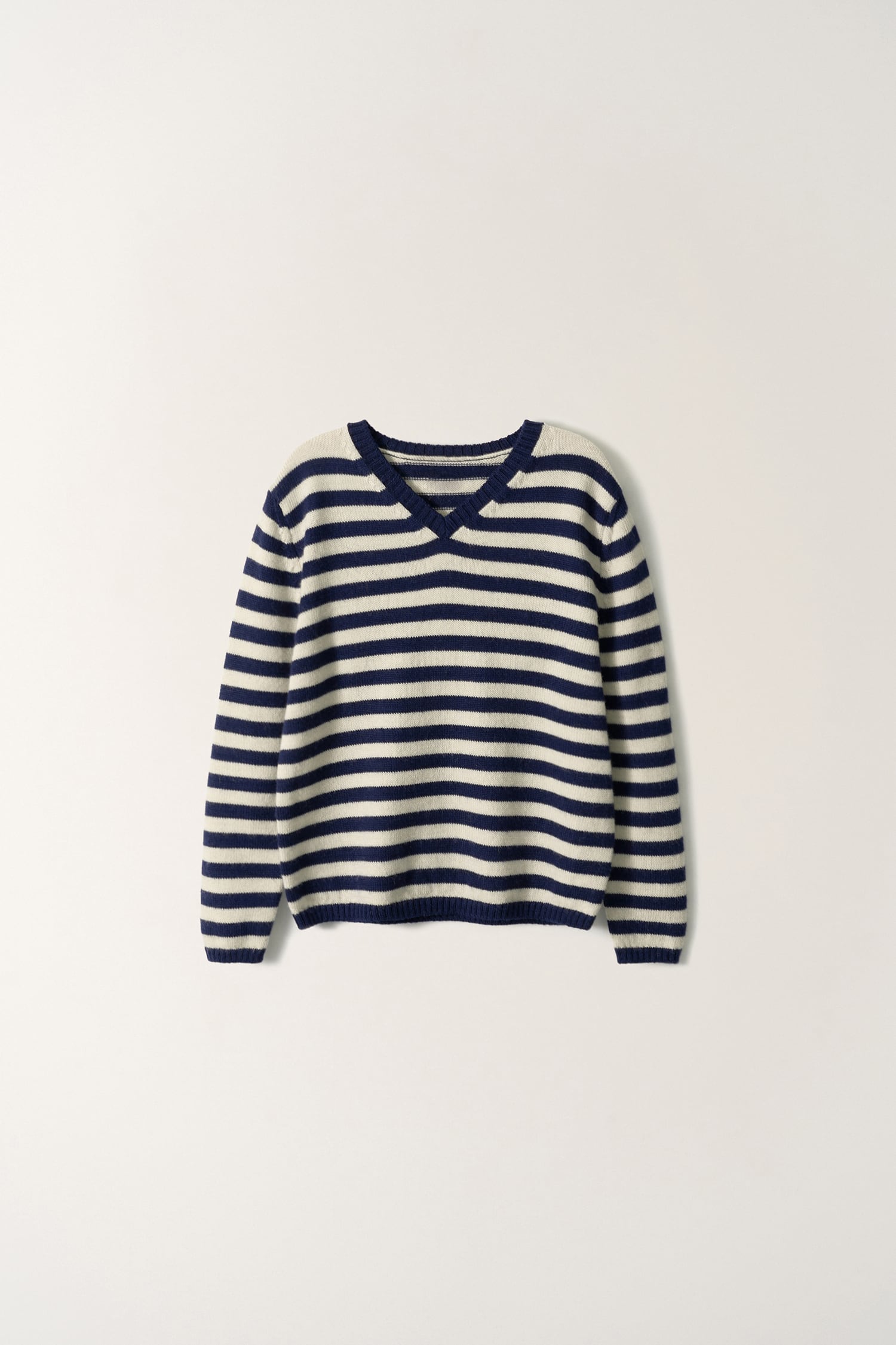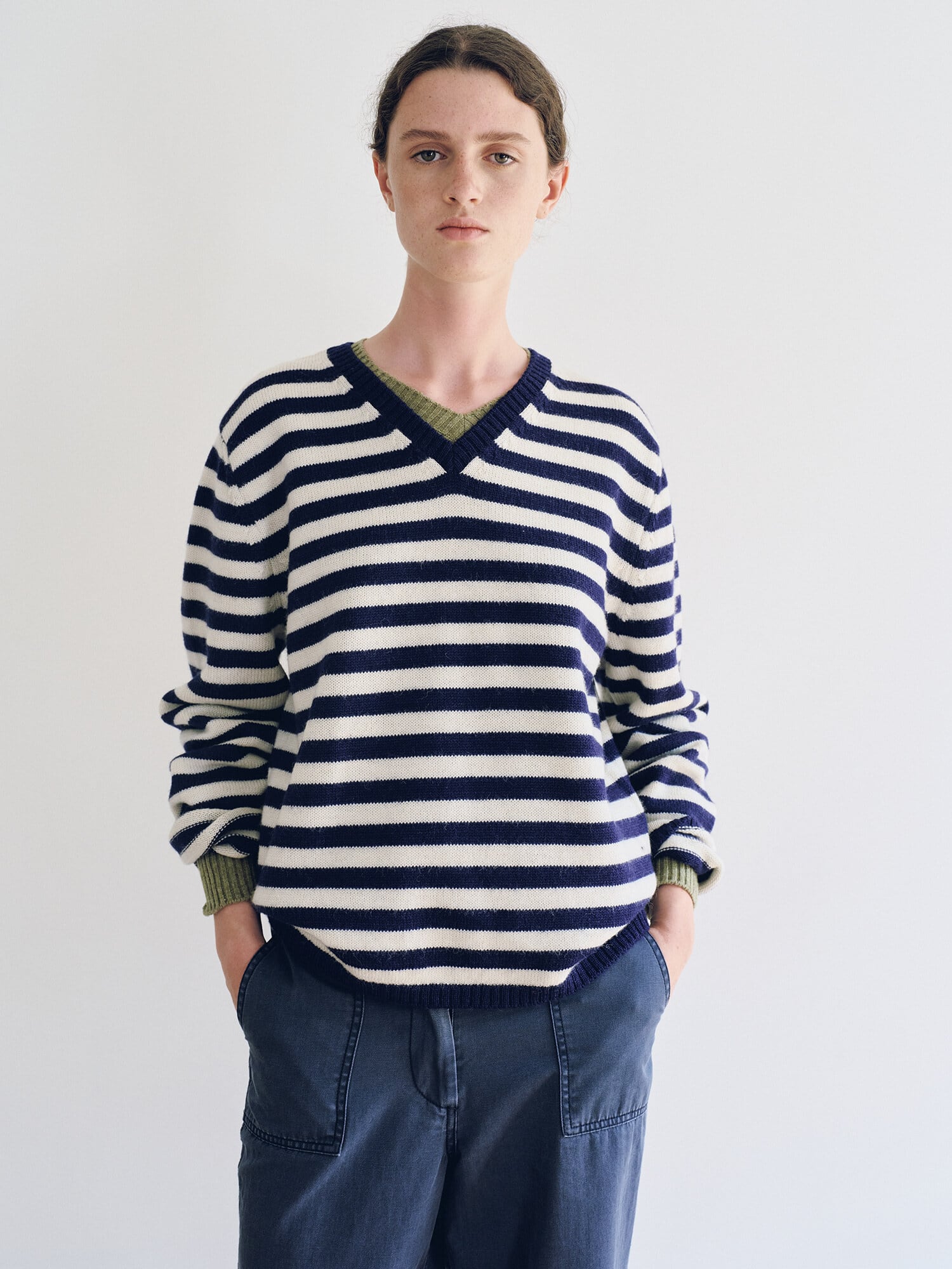 [NOTHING WRITTEN] Molly V-Neck Pullover (Ivory Stripe)