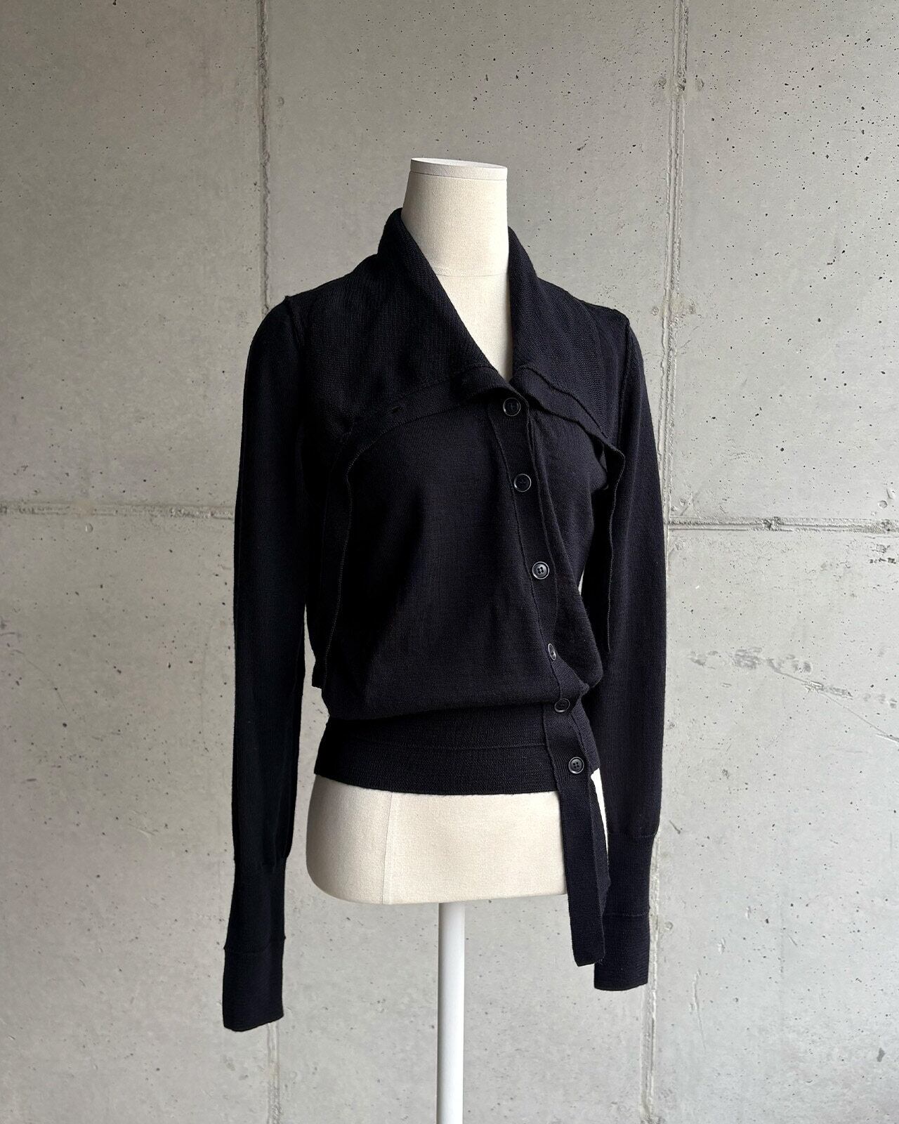 [MSCHF] ASYMMETRIC COLLAR KNIT CARDIGAN_DEEP NAVY