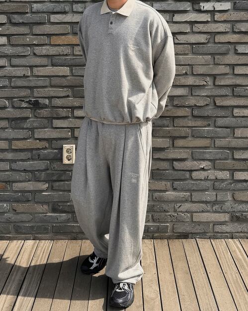 [UNDERMYCAR] Mu.145 Combi Waist Rib Wide Sweat Pants Melange Gray