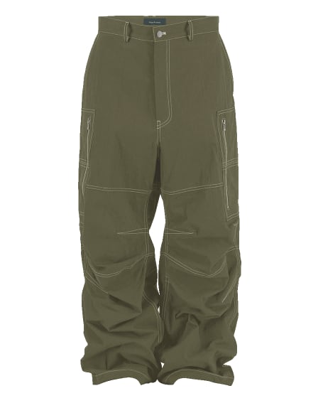 [UNDERMYCAR] 25FW Stitched Wide Cargo Pants Olive