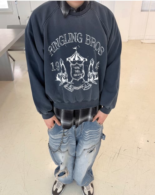 [UNDERMYCAR] 25FW Ringling Bros VTG Crewneck Washed Navy