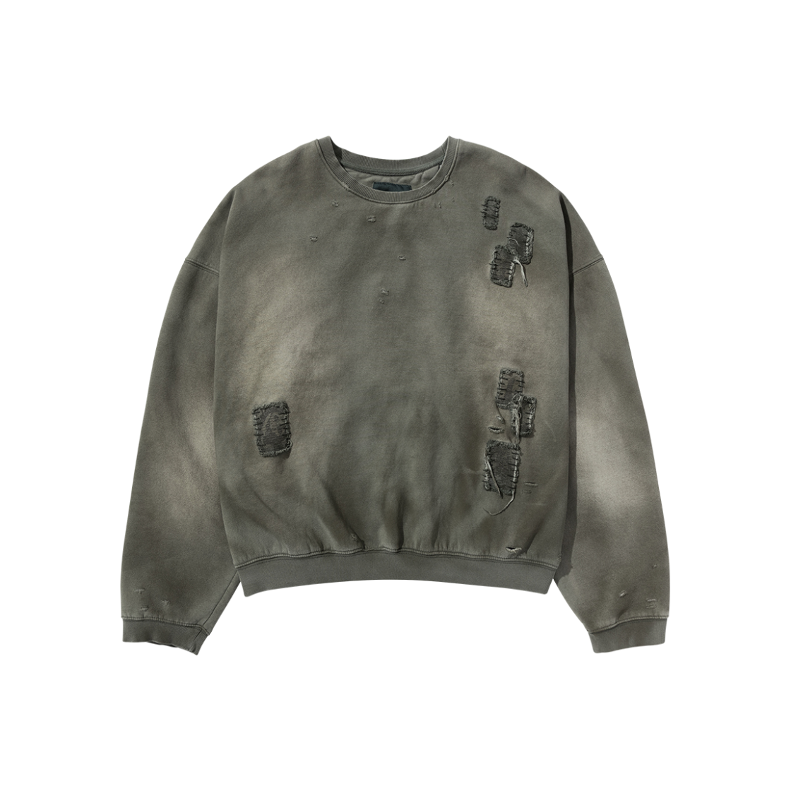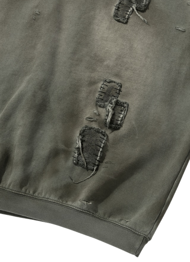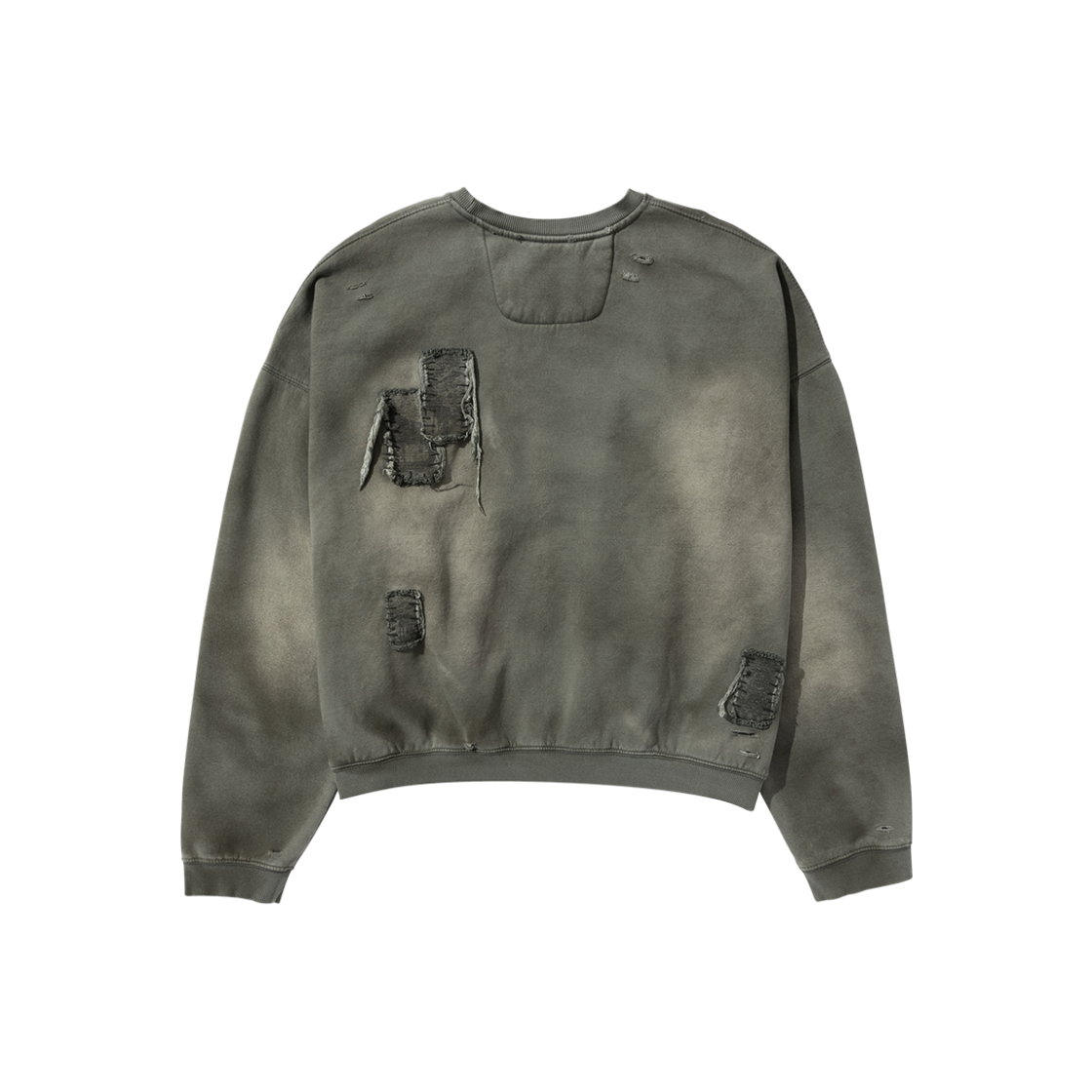 [UNDERMYCAR] 25SS Multi Little Patches Grunge Crew Neck Dirty Green