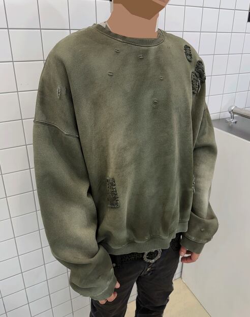 [UNDERMYCAR] 25SS Multi Little Patches Grunge Crew Neck Dirty Green 正規品 韓国ブランド 韓国通販 韓国代行 韓国ファッション アンダーマイカー 日本 店舗