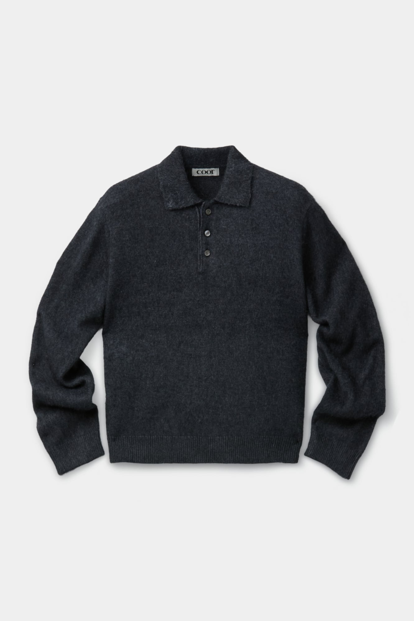 [COOR] Raccoon Three-Button Collar Sweater (Charcoal Gray)