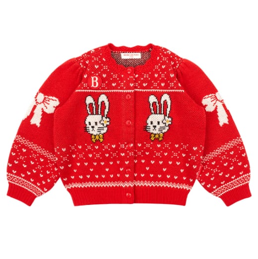 [BEBE DE PINO] Ribbon bunny scallop sweater cardigan