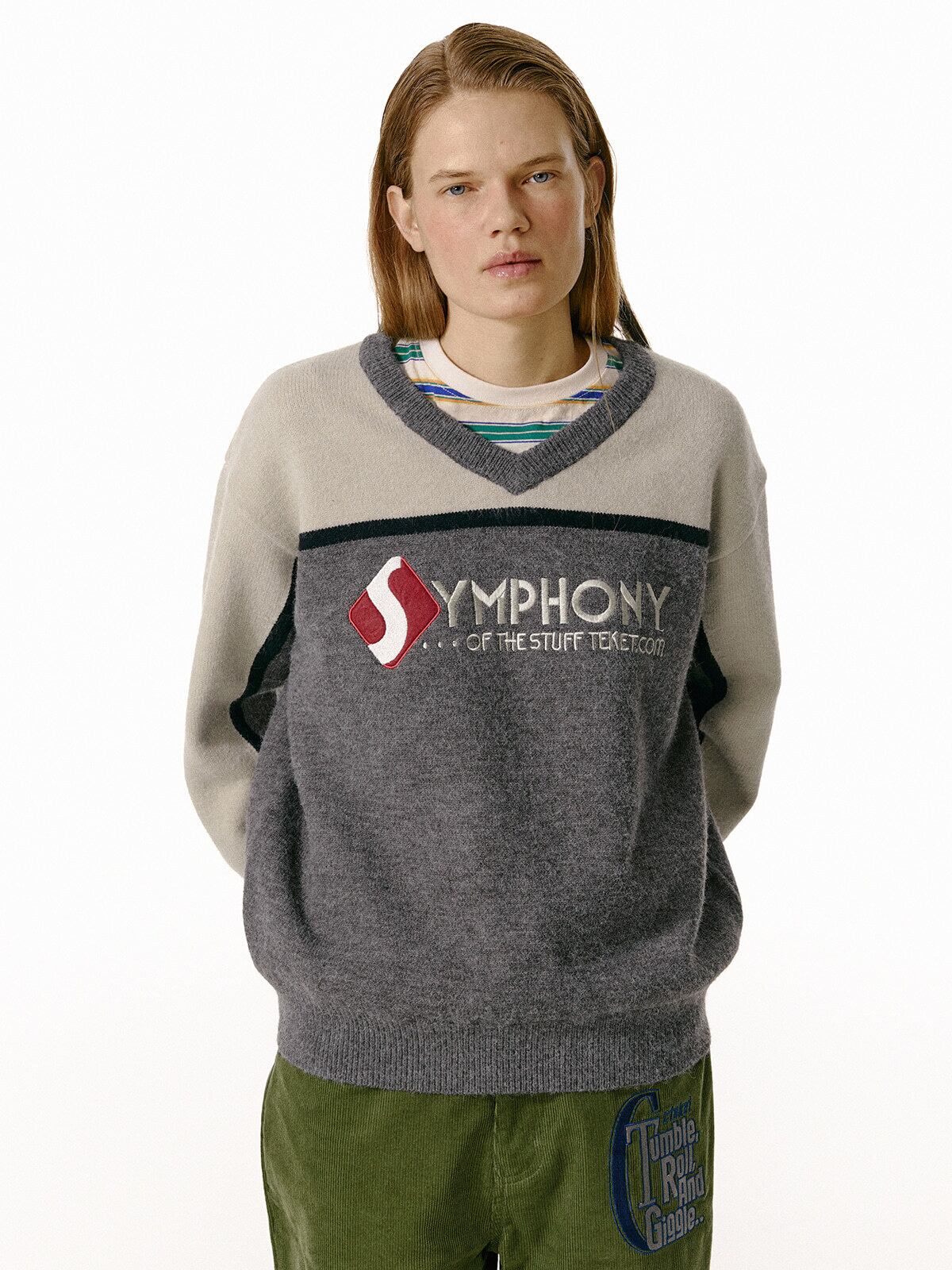 [TEKET] Symphony V-Neck Knit Sweater Melange Gray