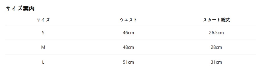 下記のサイズ表をご参照ください。