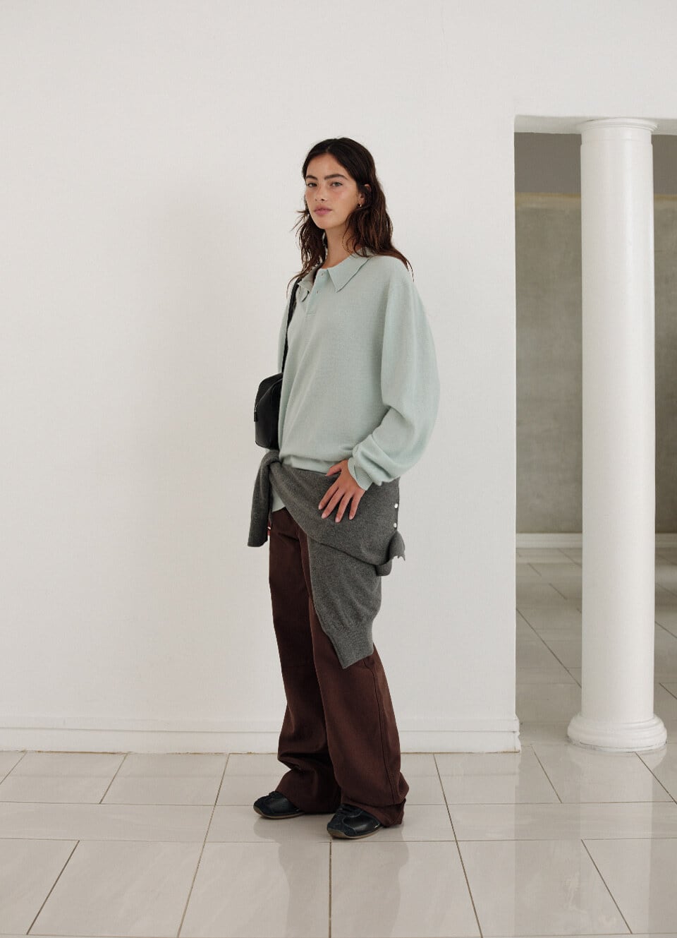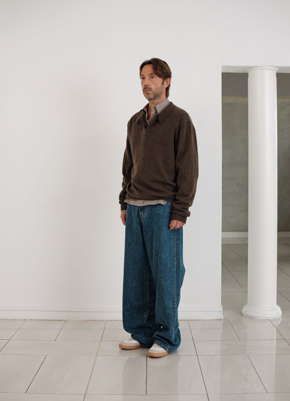 [The Barnnet] Oversized Cashmere Wimblyn Knit Polo Shirt_Dark Brown