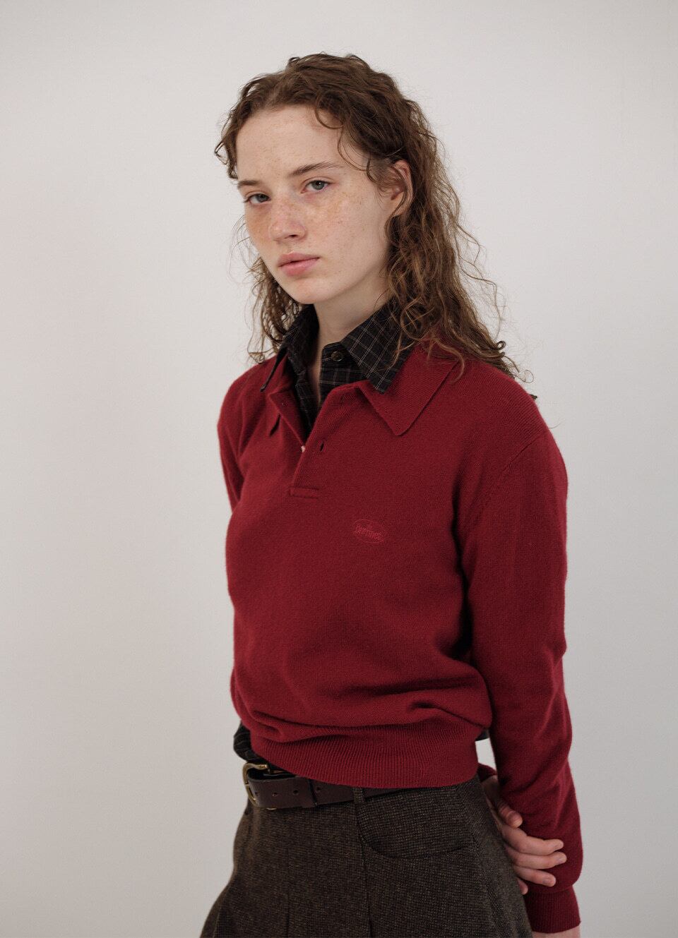 [The Barnnet] Cashmere Wimblyn Knit Polo Shirt_Burgundy 正規品 韓国ブランド 韓国通販 韓国代行 韓国ファッション ザ バーネット ザバーネット 日本 店舗
