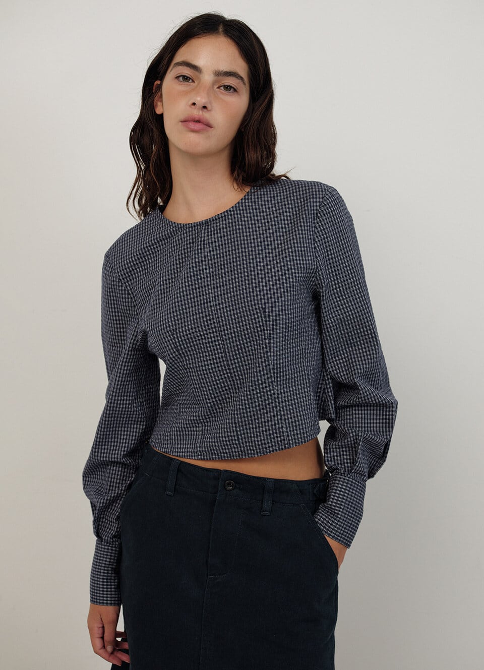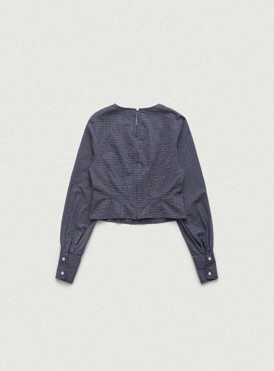 [The Barnnet] Linea Cropped Blouse_Navy 正規品 韓国ブランド 韓国通販 韓国代行 韓国ファッション ザ バーネット ザバーネット 日本 店舗