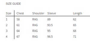 添付のサイズ表をご参照ください。