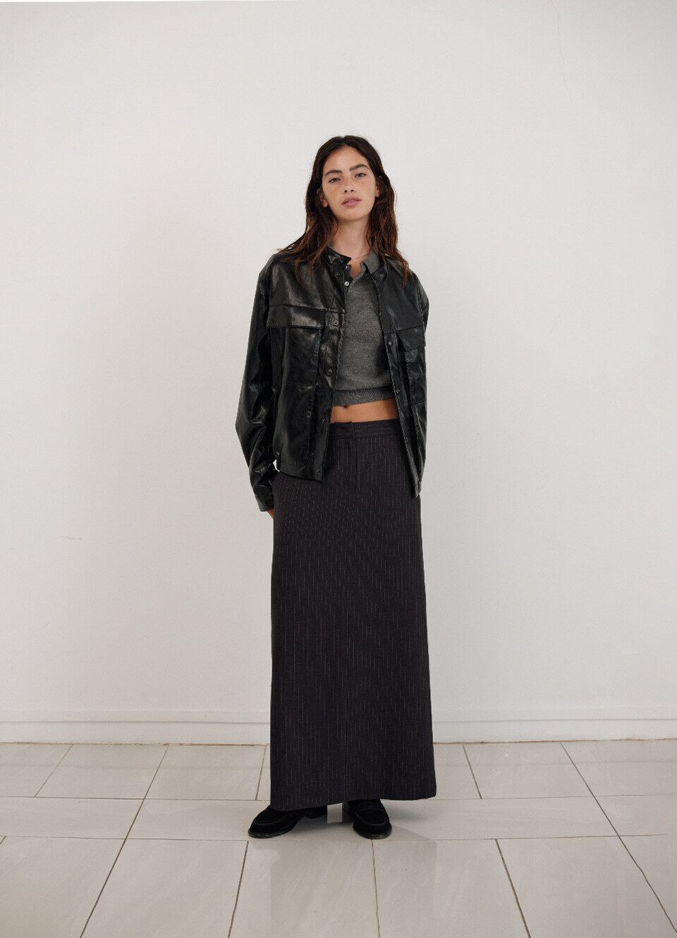 [The Barnnet] Mould Low Rise Maxi Skirt_Charcoal