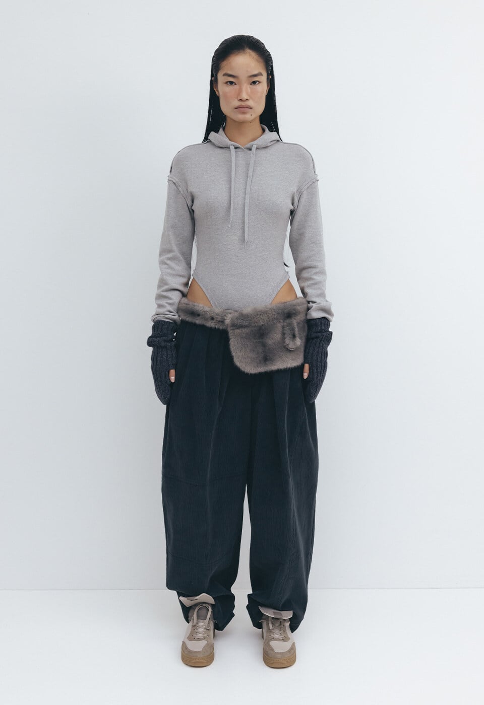 [OPEN YY] FURRY POCKET BELT BAG, GRAY