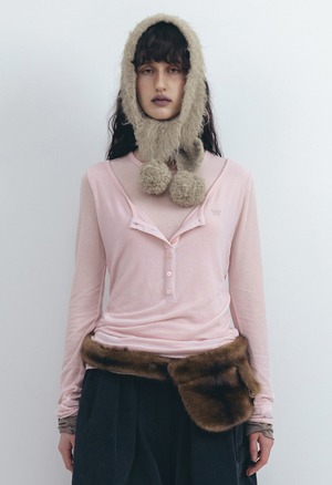 [OPEN YY] SHAGGY POMPON SCARF, BEIGE