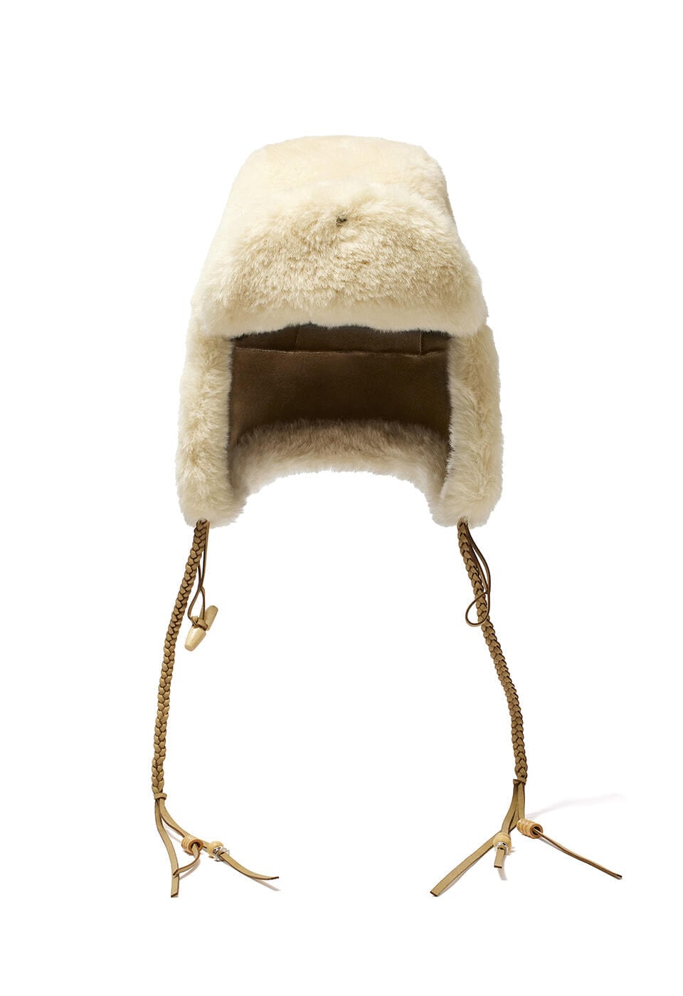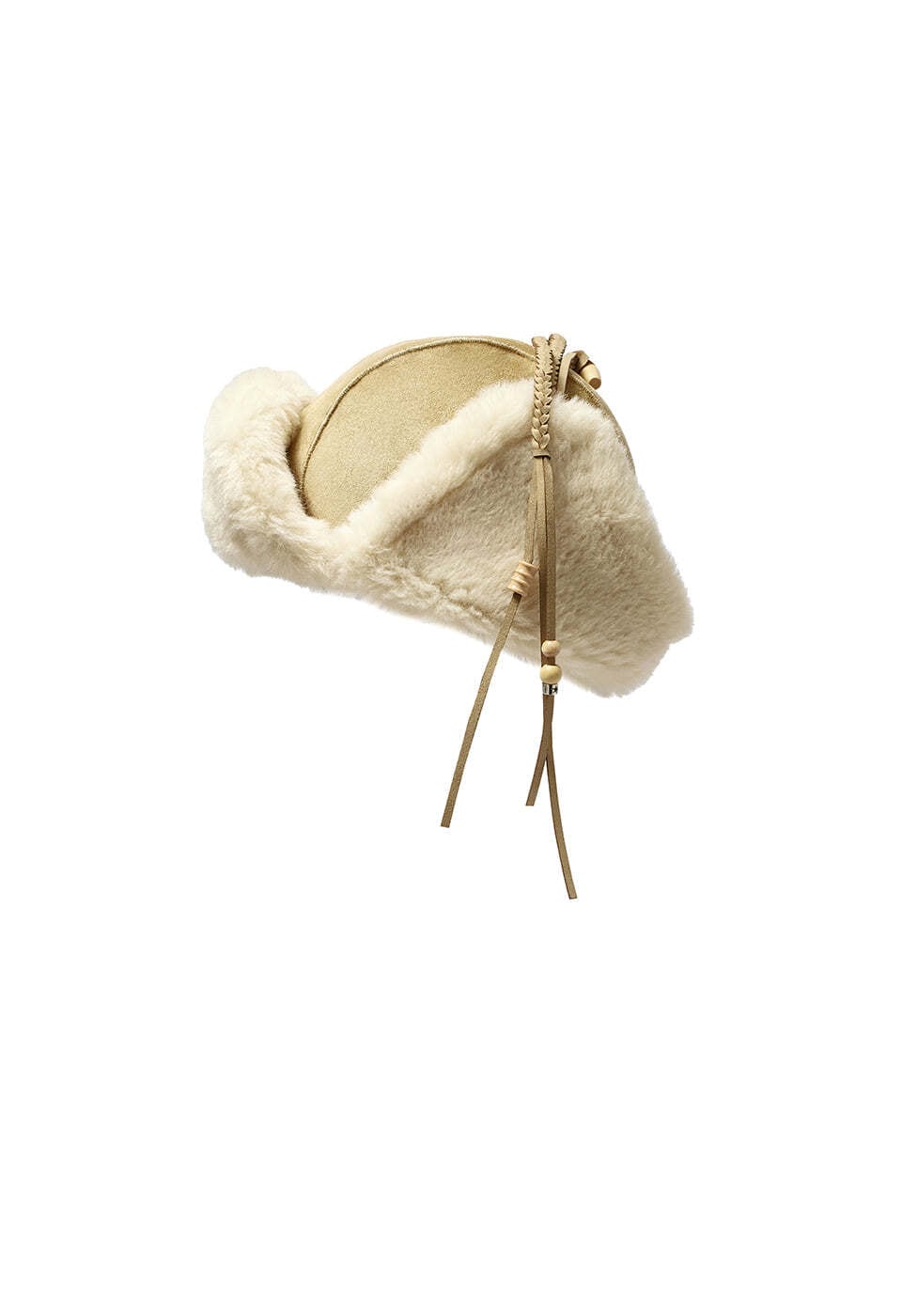 [OPEN YY] BRAIDED SHEARLING TRAPPER, BEIGE
