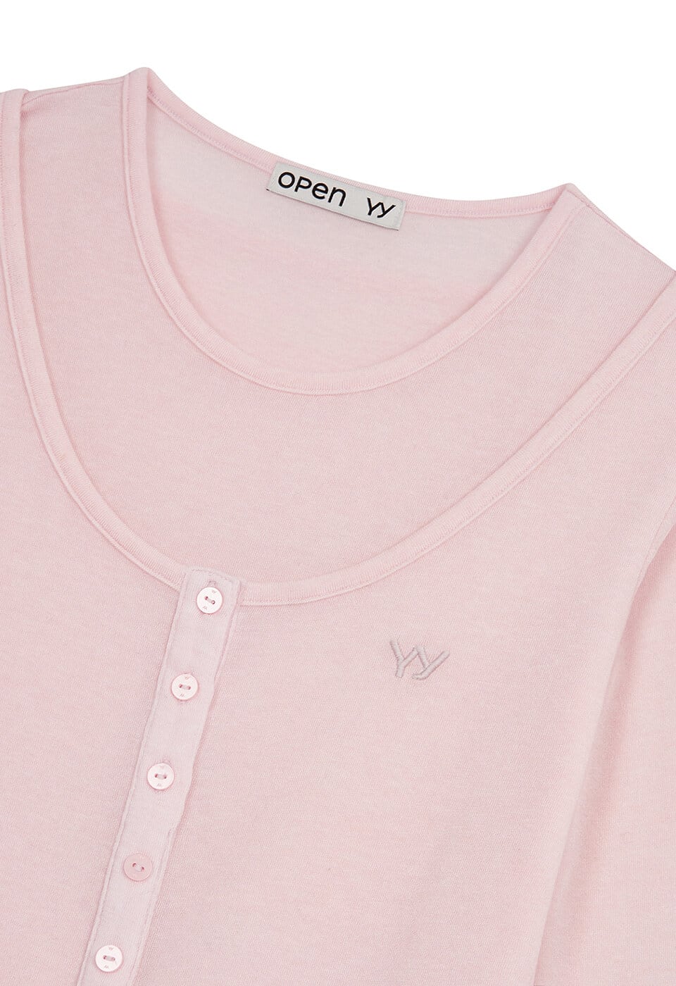 [OPEN YY] LAYERED HENLEY LOUNGE TEE, PINK 正規品 韓国ブランド 韓国通販 韓国代行 韓国ファッション オープン ワイワイ 日本 店舗