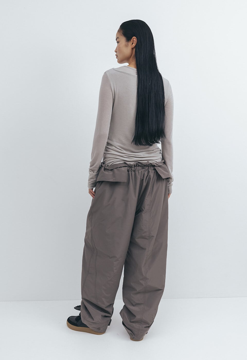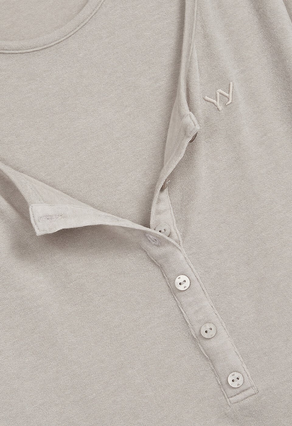 [OPEN YY] LAYERED HENLEY LOUNGE TEE, BEIGE