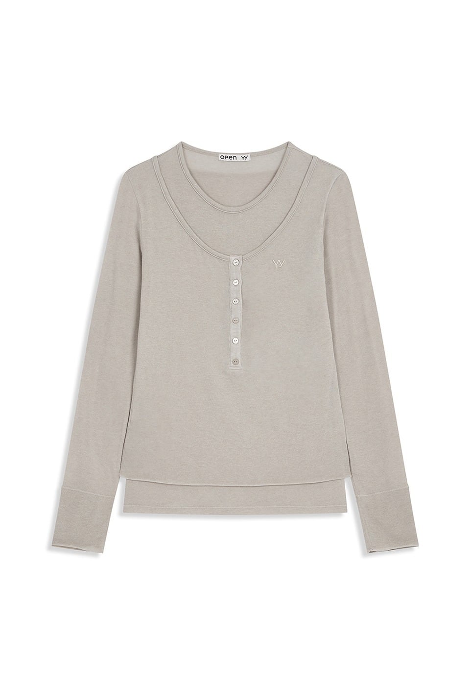 [OPEN YY] LAYERED HENLEY LOUNGE TEE, BEIGE 正規品 韓国ブランド 韓国通販 韓国代行 韓国ファッション オープン ワイワイ 日本 店舗