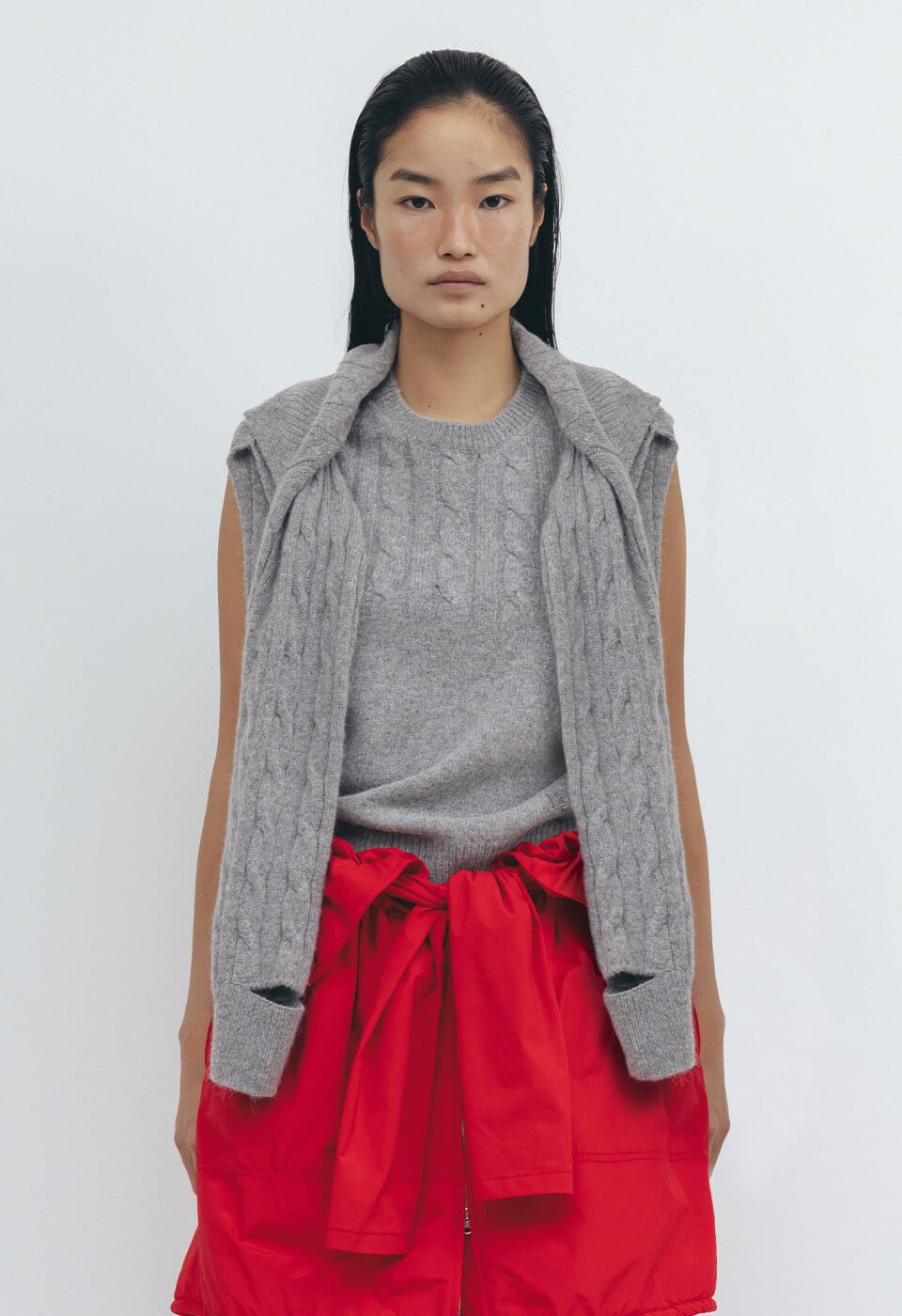 [OPEN YY] CONVERTIBLE CABLE KNIT, GRAY
