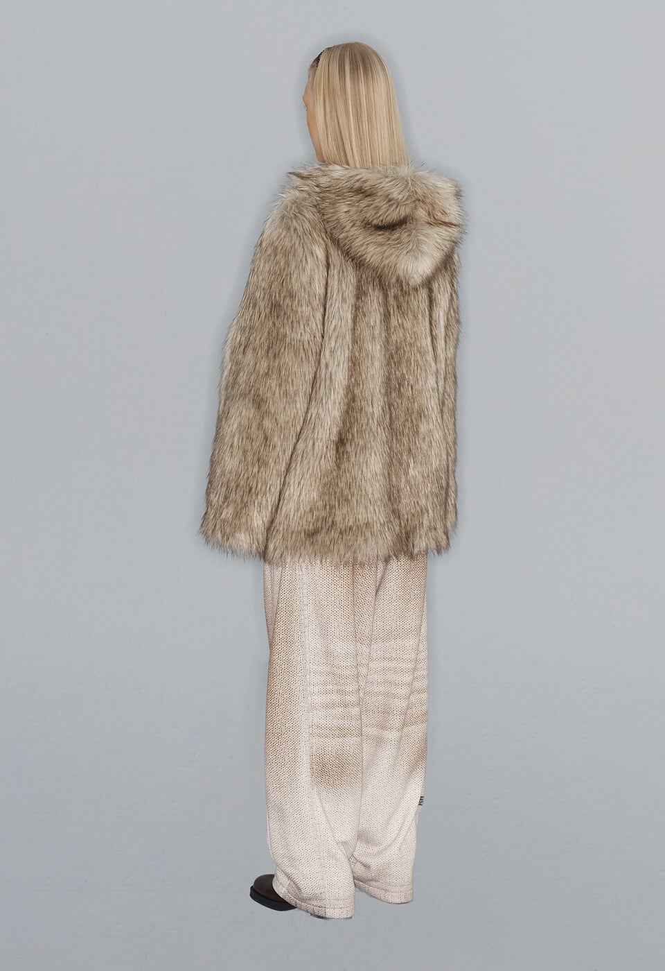 [OPEN YY] REVERSIBLE FAUX FUR HOOD JACKET, BEIGE
