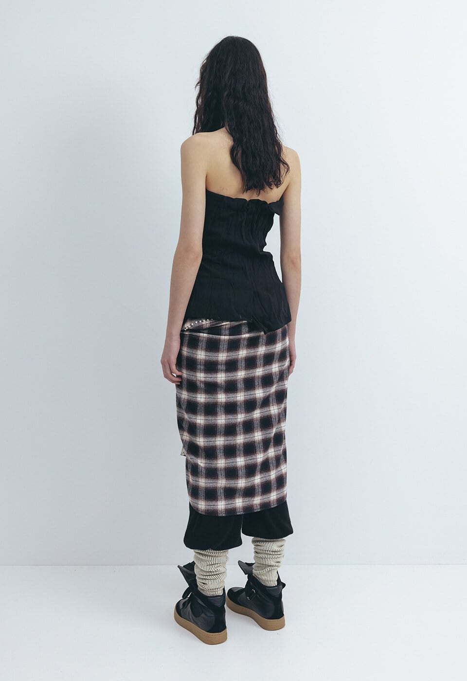 [OPEN YY] CRINKLED UNBALANCED BUSTIER, BLACK