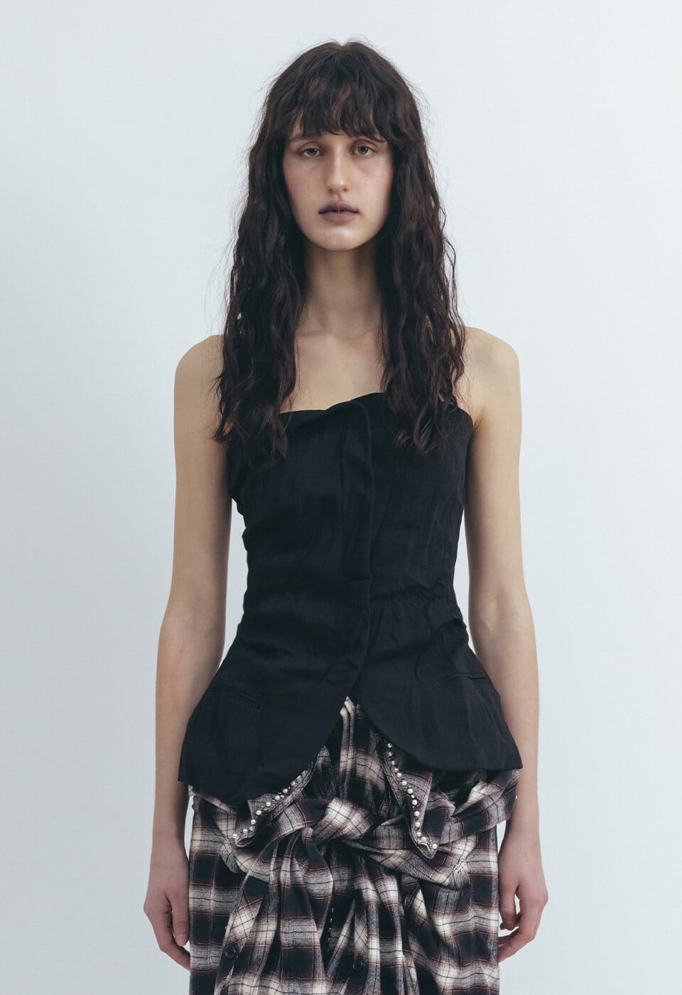 [OPEN YY] CRINKLED UNBALANCED BUSTIER, BLACK 正規品 韓国ブランド 韓国通販 韓国代行 韓国ファッション オープン ワイワイ 日本 店舗