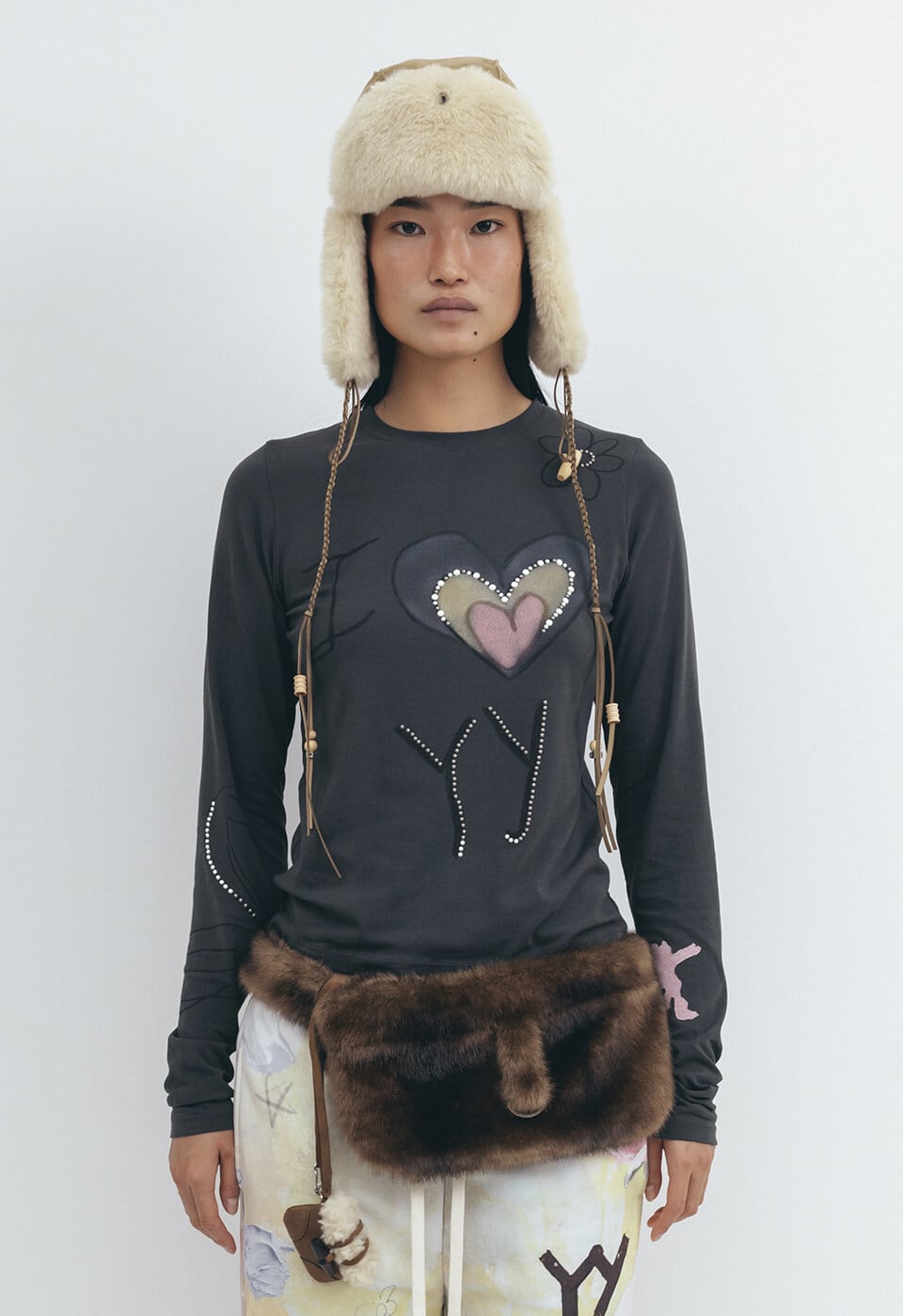 [OPEN YY] BEADED I LOVE YY TEE, CHARCOAL