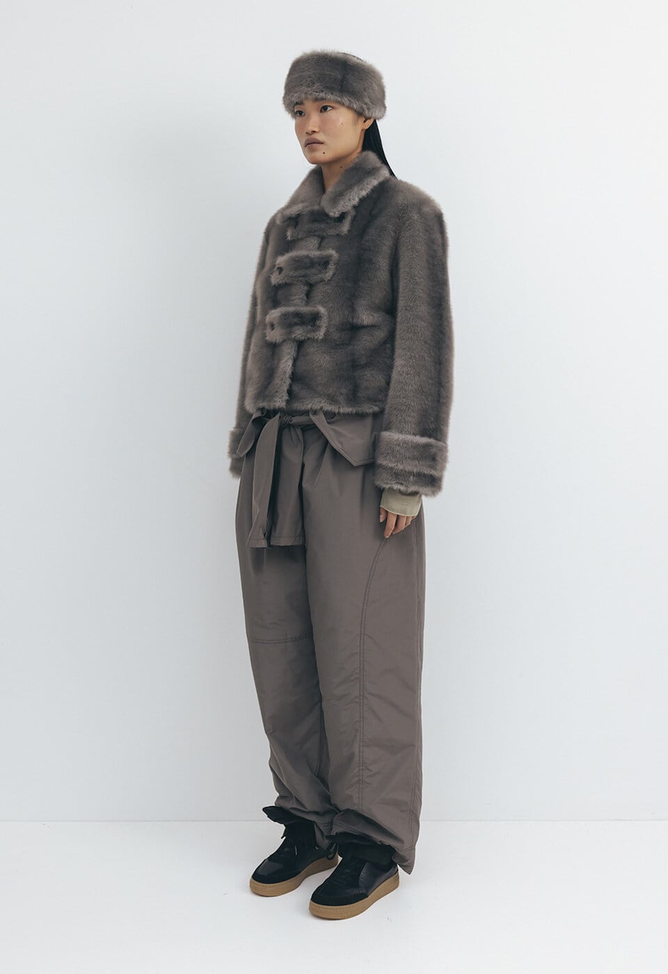 [OPEN YY] FAUX FUR TAB TOGGLE JACKET, GRAY