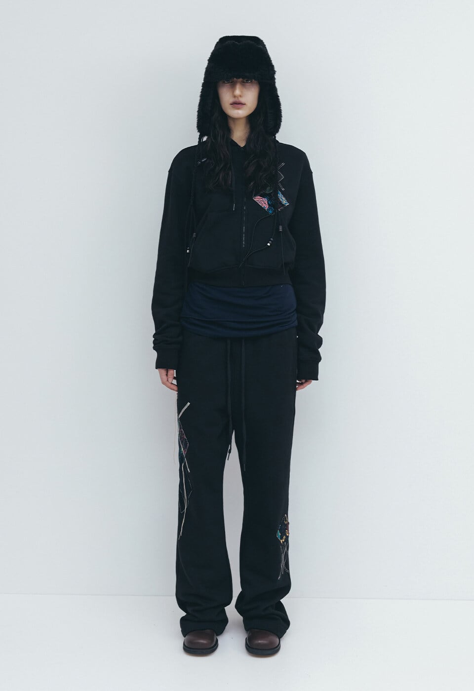 [OPEN YY] ARGYLE PATCHED LOUNGE PANTS, BLACK 正規品 韓国ブランド 韓国通販 韓国代行 韓国ファッション オープン ワイワイ 日本 店舗