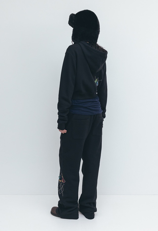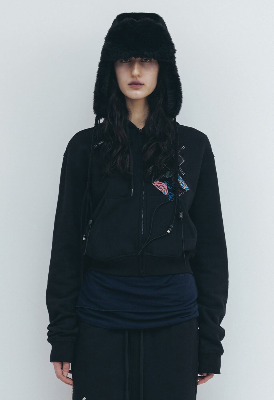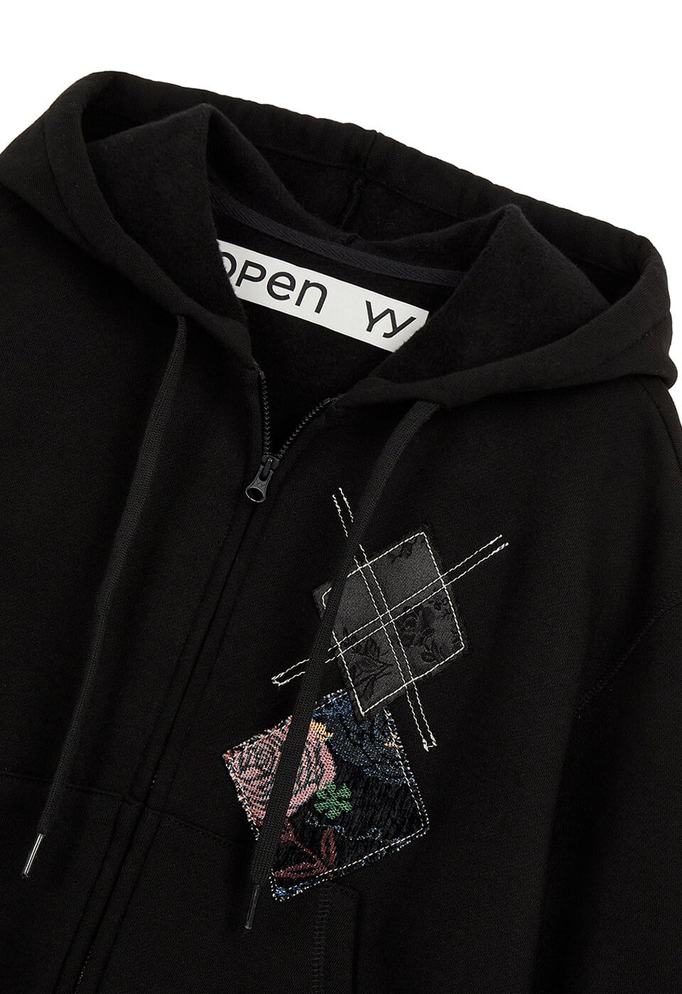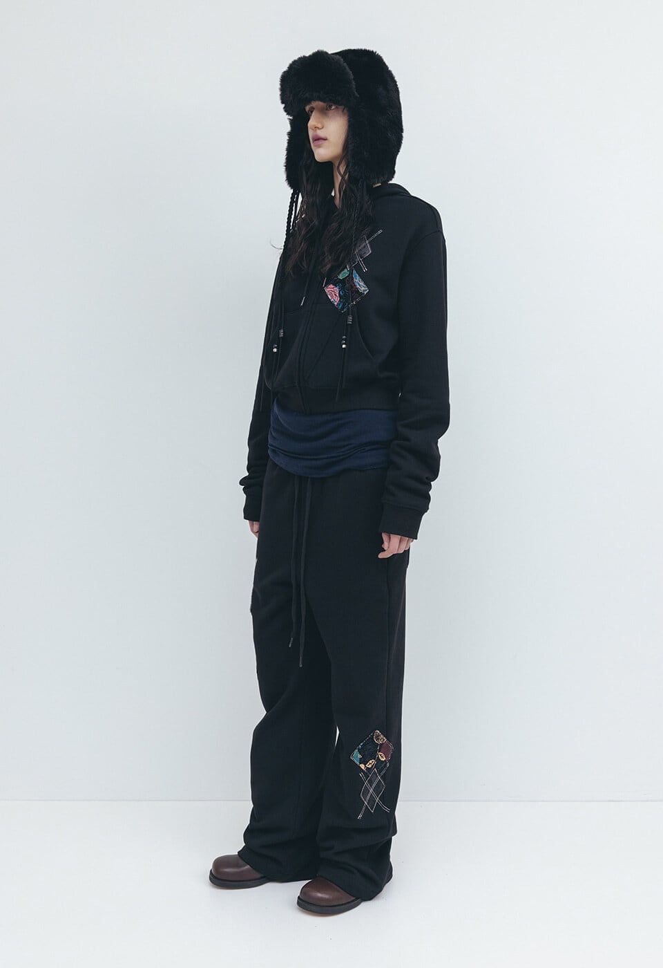 [OPEN YY] ARGYLE PATCHED HOODIE, BLACK