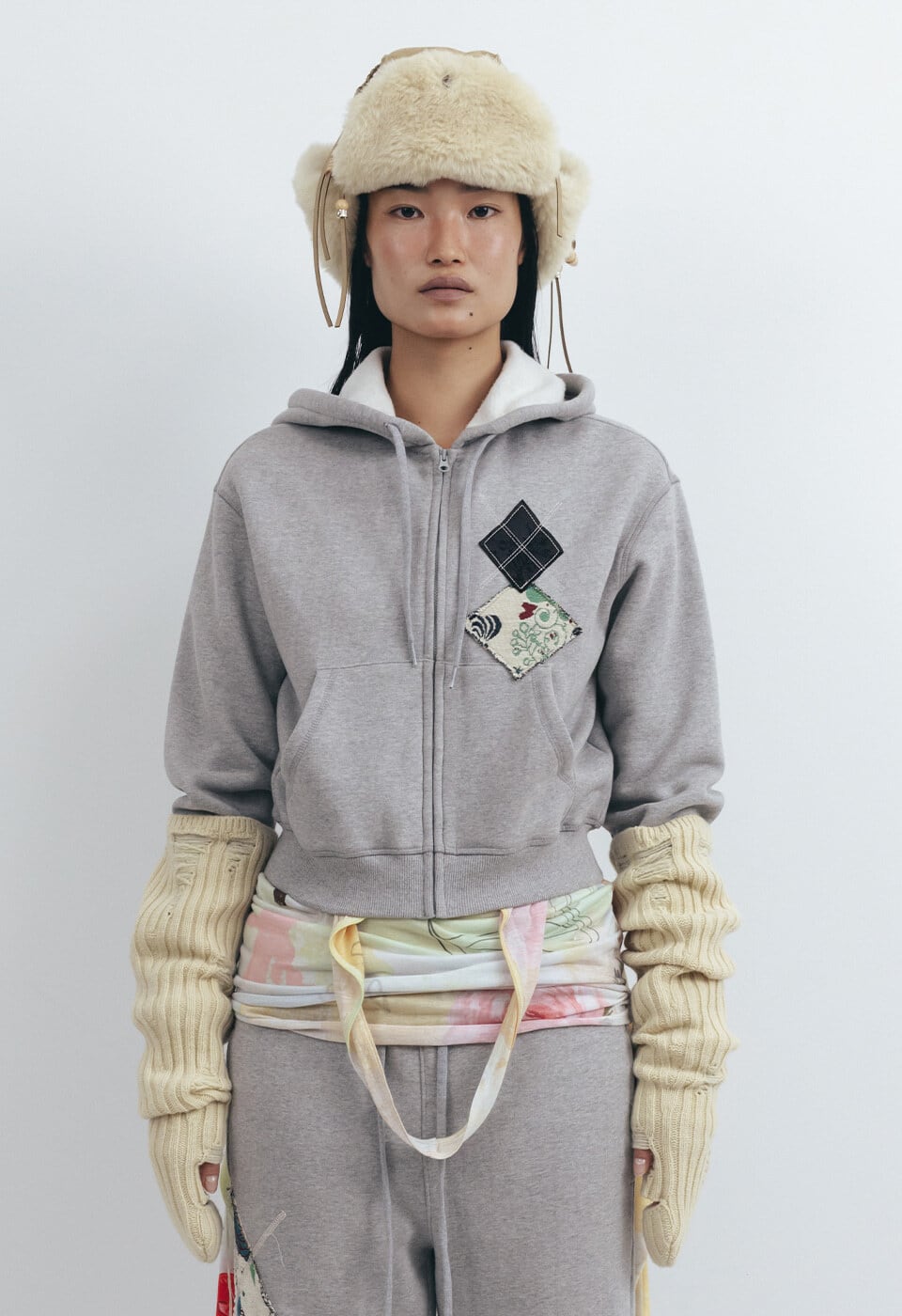 [OPEN YY] ARGYLE PATCHED HOODIE, GRAY