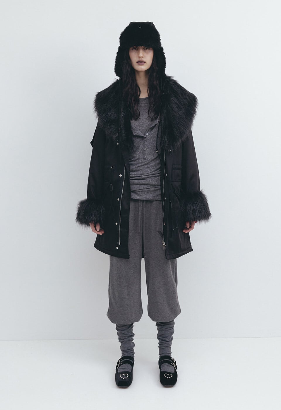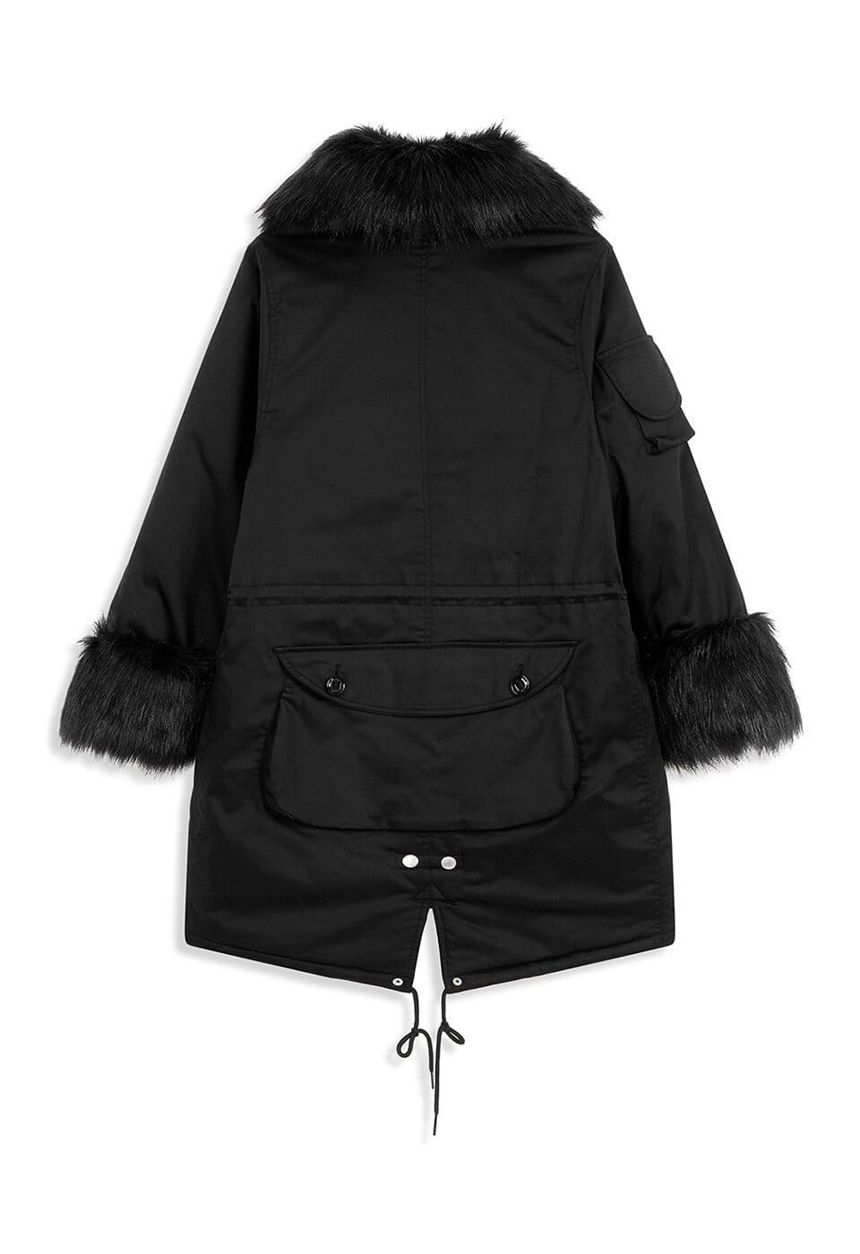 [OPEN YY] FAUX FUR TRIMMING SAFARI JACKET, BLACK